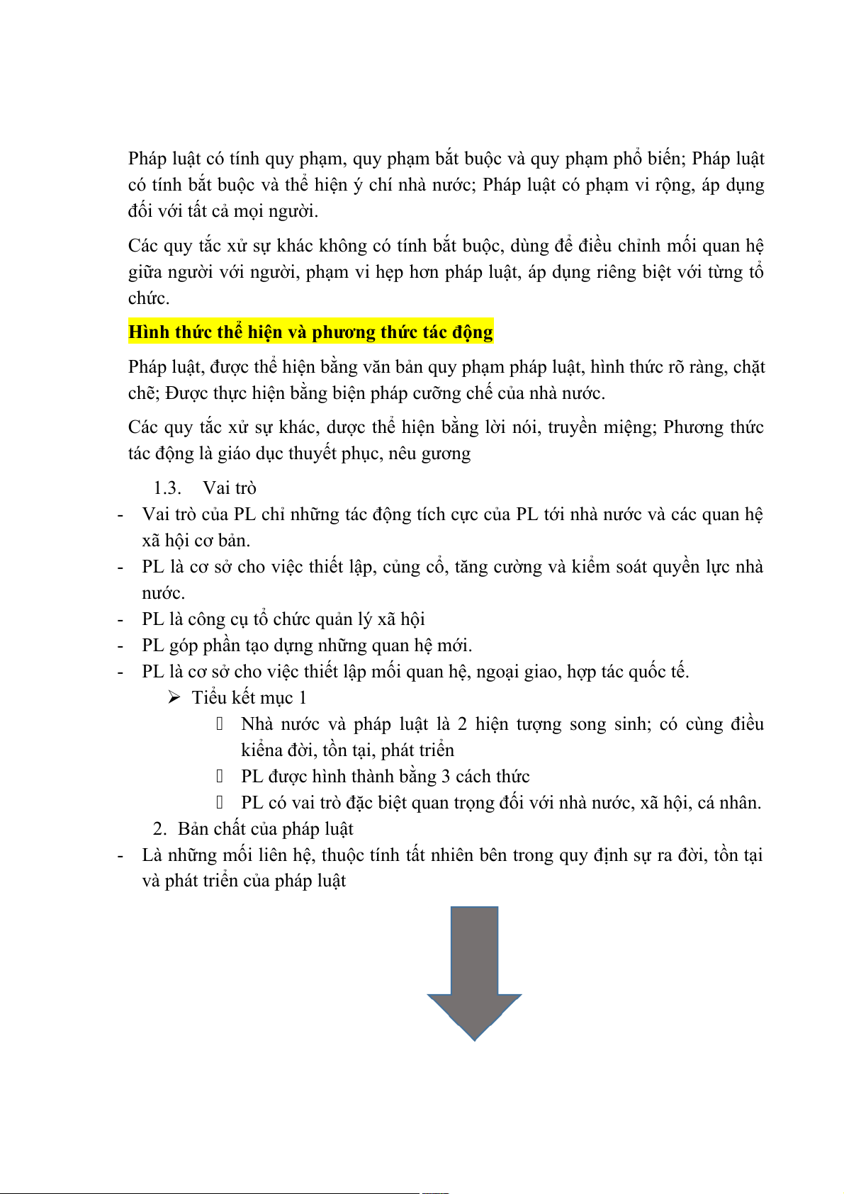 - PL là cơ sở cho việc thiết lập mối quan hệ, ngoại giao, hợp tác quốc tế. Tiểu kết mục 1