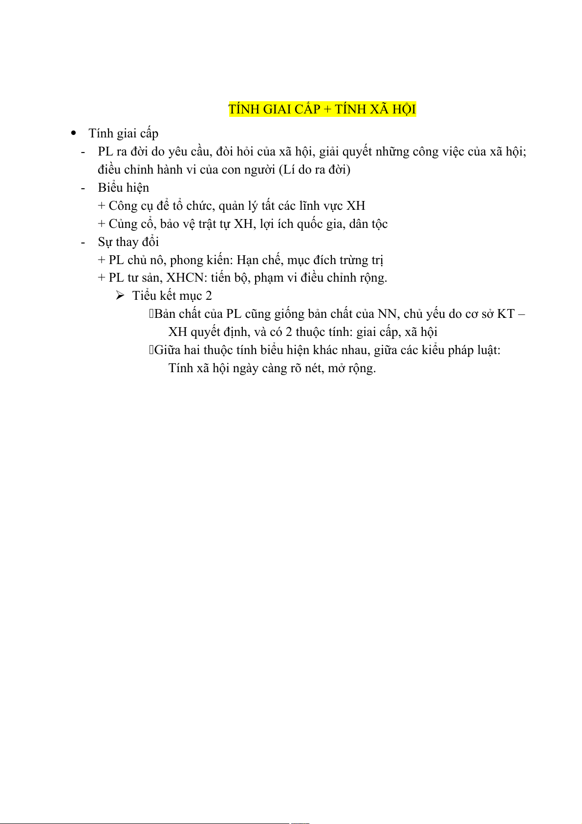 + PL tư sản, XHCN: tiến bộ, phạm vi điều chỉnh rộng. Tiểu kết mục 2