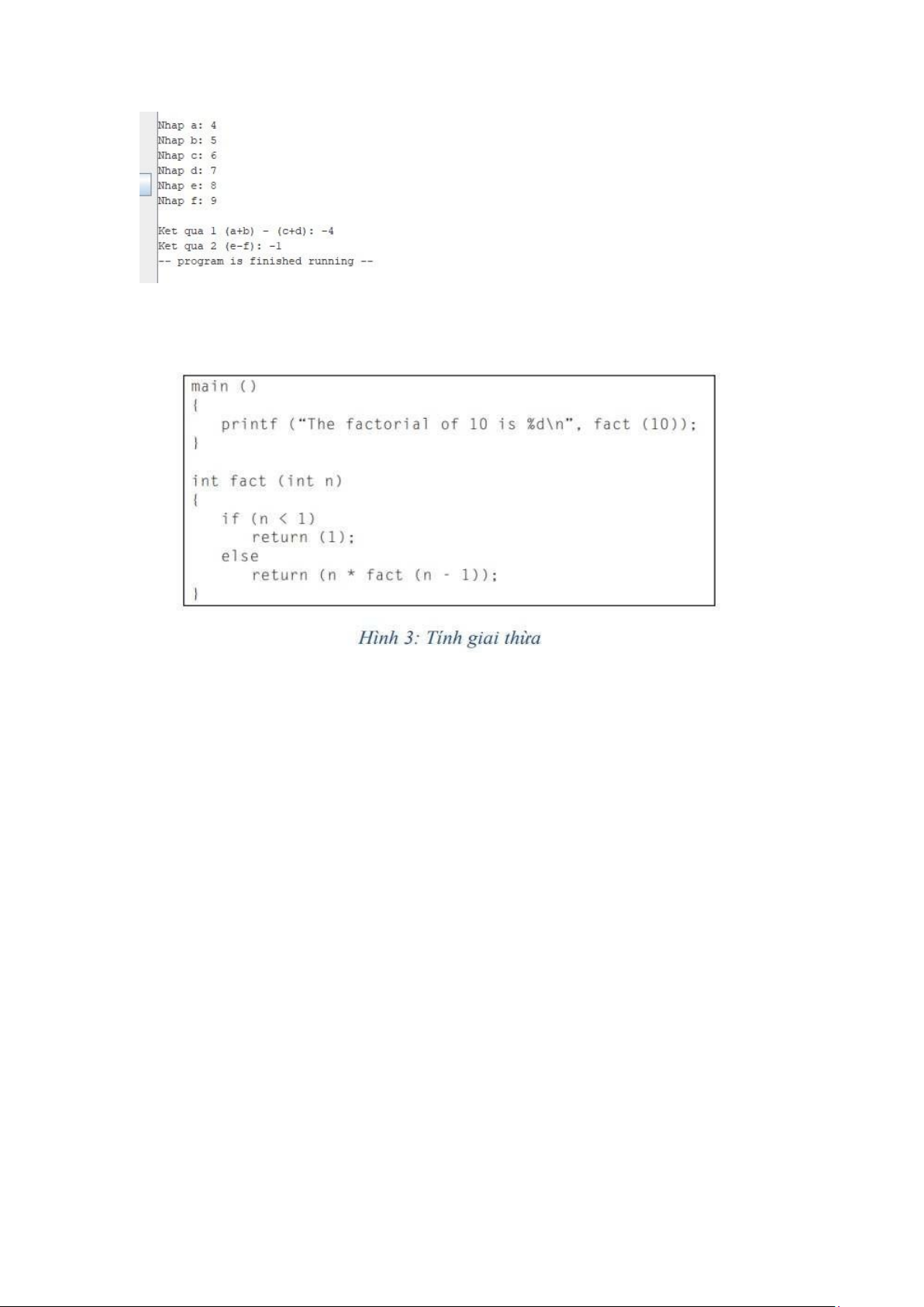 cho chương trình tính giai thừa được viết bằng code C như Hình 3. - Đoạn code: lOMoAR cPSD| 59285474