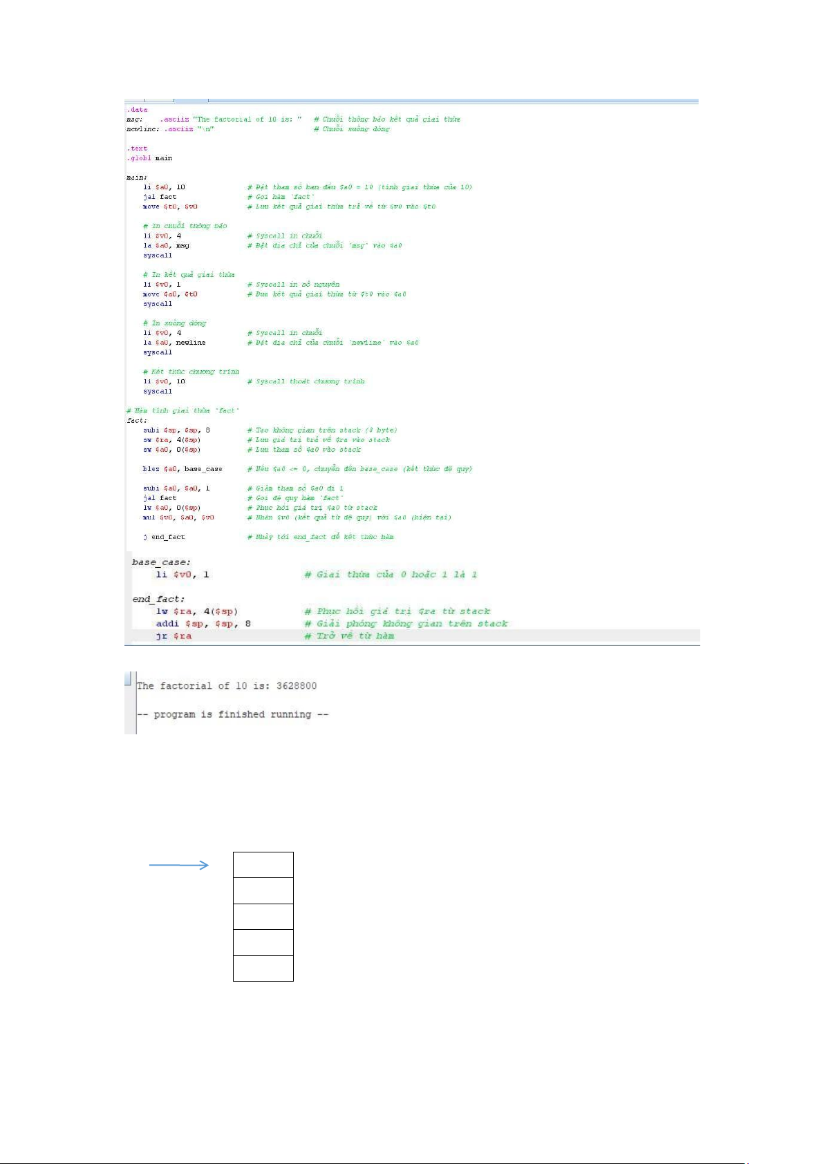 1. Tiếp tục nội dung 2. Vẽ lại hình ảnh của các stack trong trường hợp tính 5! và 10! - Trường hợp 5! SP 1, ra