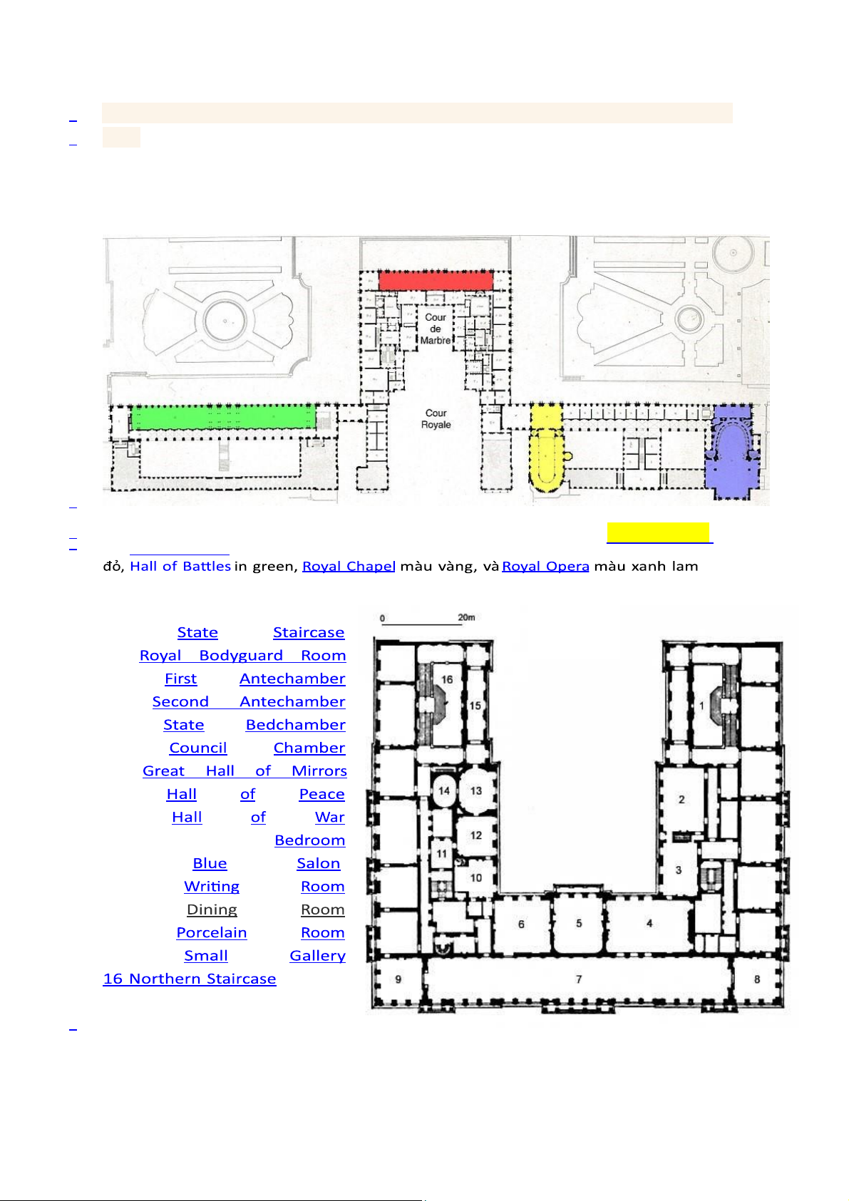 Kế hoạch của tầng chính (c. 1837, với phía bắc bên phải), cho thấy màu Hall of Mirrors 5 6