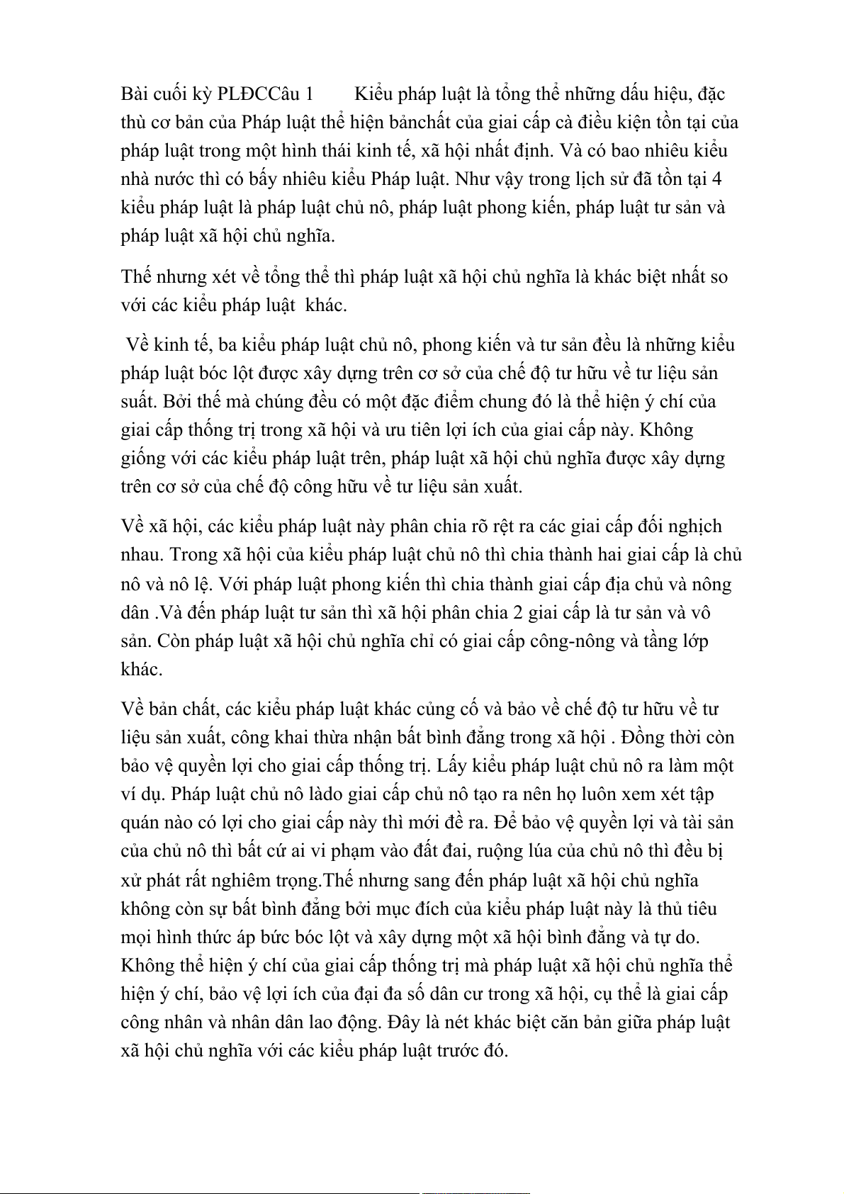 Bài cuối kỳ PLĐCCâu 1 Kiểu pháp luật là tổng thể những dấu hiệu, đặc