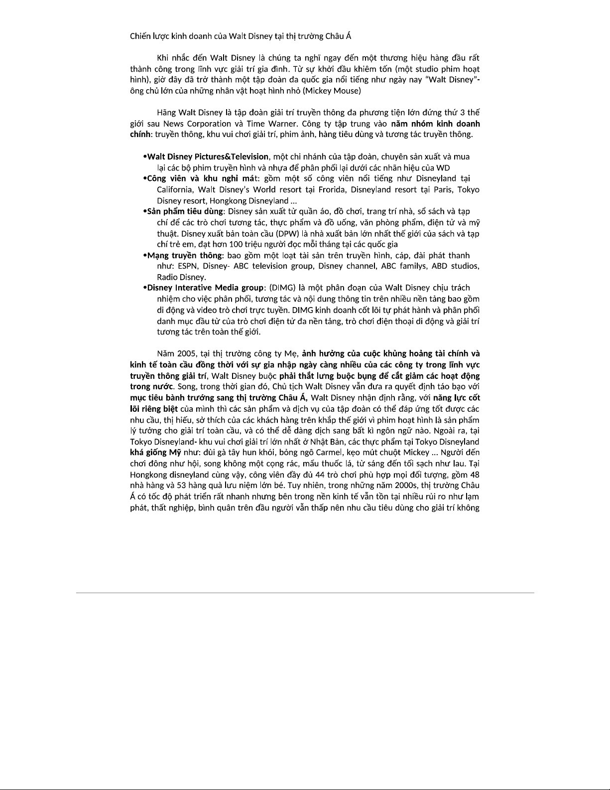 Kinh doanh Walt Disney: Phân tích chiến lược tại Châu Á - CASE STUDY QTCL