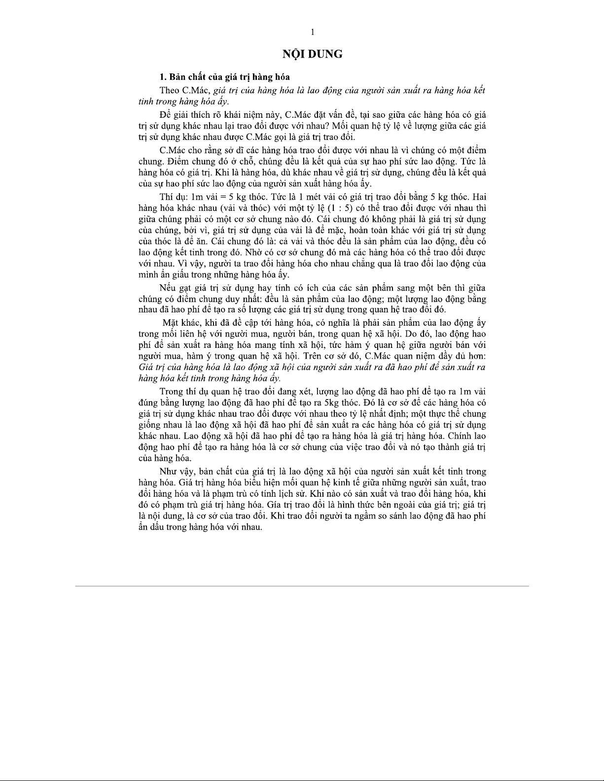 Kinh Tế Chính Trị - Giá Trị Hàng Hóa Trong Sản Xuất Theo C.Mác