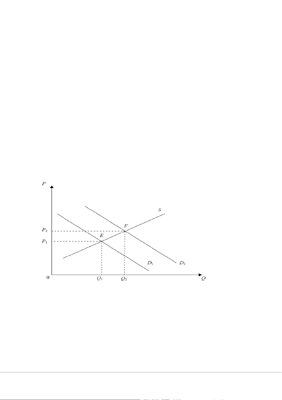 nhập tăng, đường cầu về một loại hàng hoá thông thường sẽ dịch chuyển từ D1 thành D2, điểm