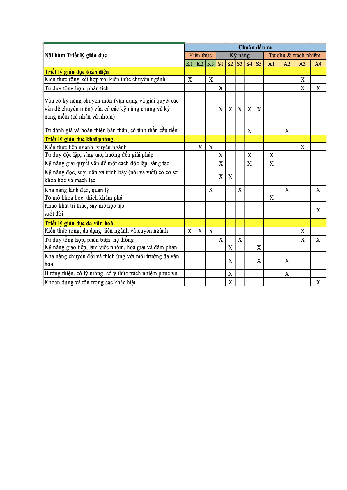 4. Chuẩn đầu ra chương trình đào tạo: Mức tự chủ và Về kiến thức Về kỹ năng trách nhiệm