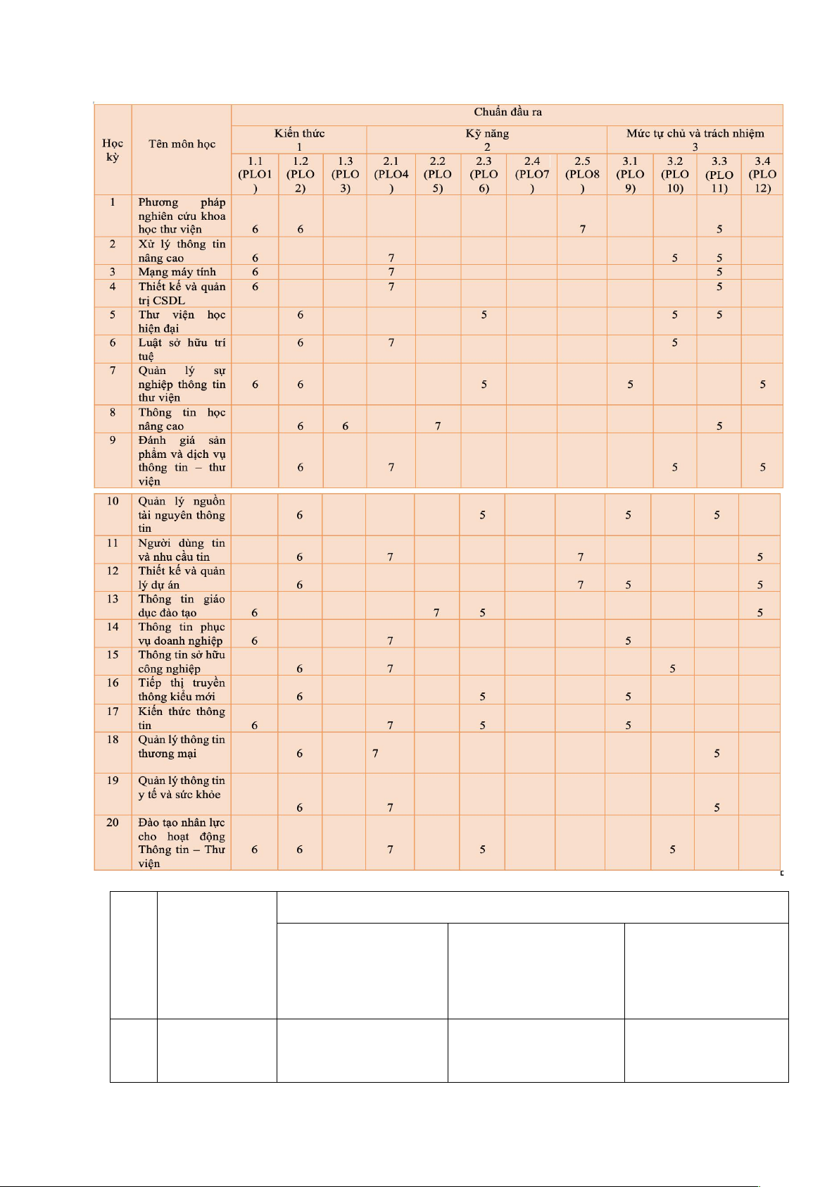 trong lĩnh vực thư viện – thông tin (PLO12) tin. (PLO7)