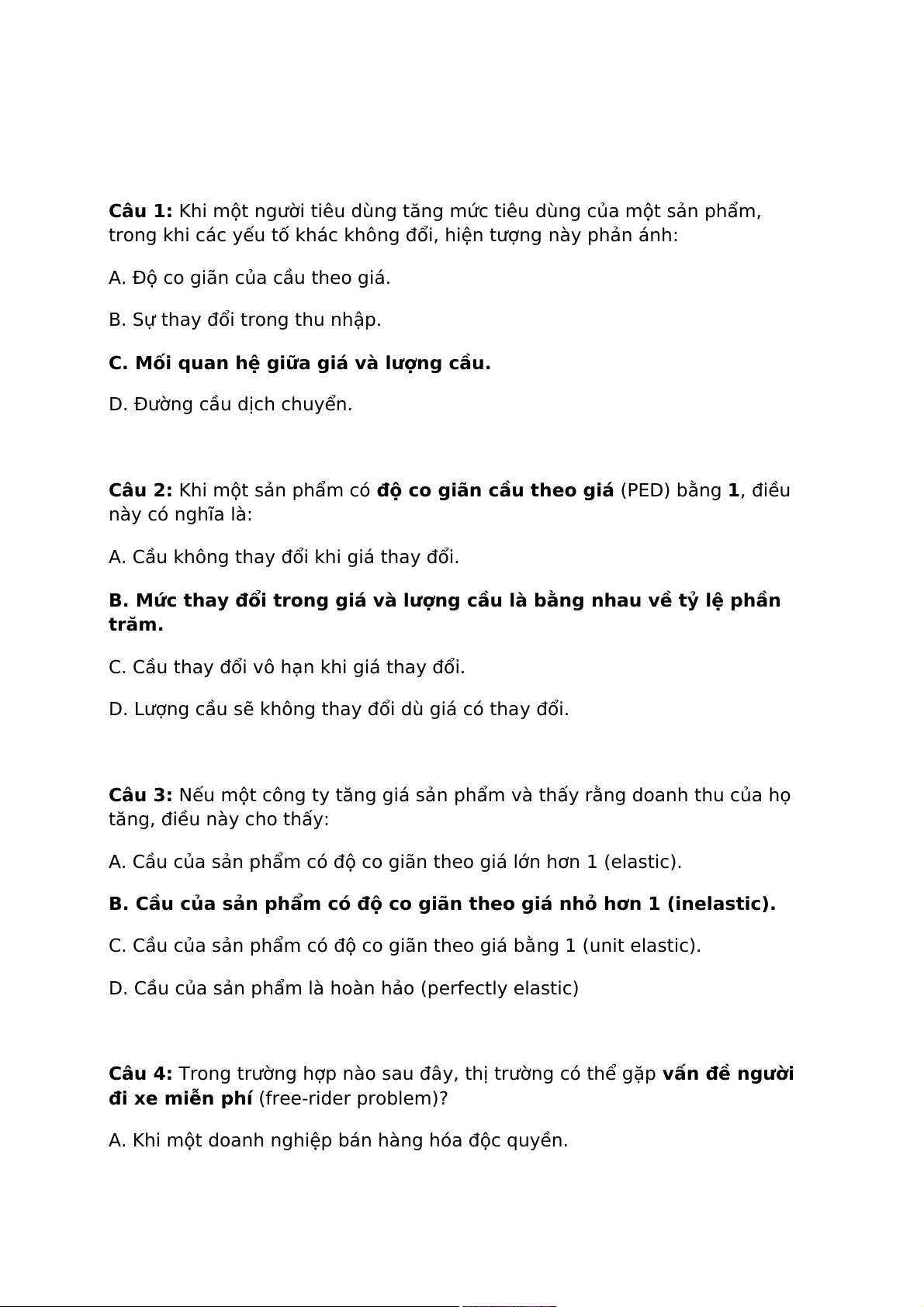Câu 2: Khi một sản phẩm có độ co giãn cầu theo giá (PED) bằng 1, điều này có nghĩa là: