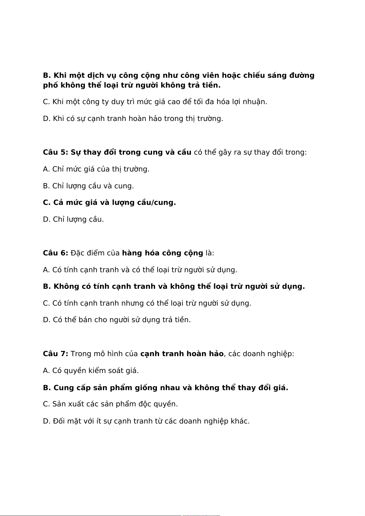 Câu 6: Đặc điểm của hàng hóa công cộng là: