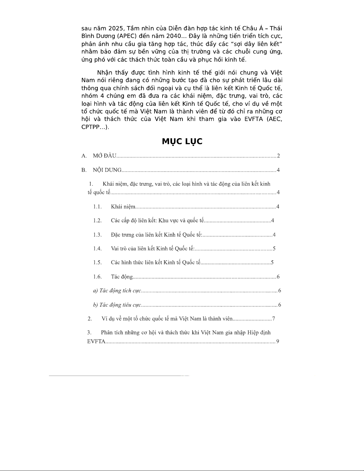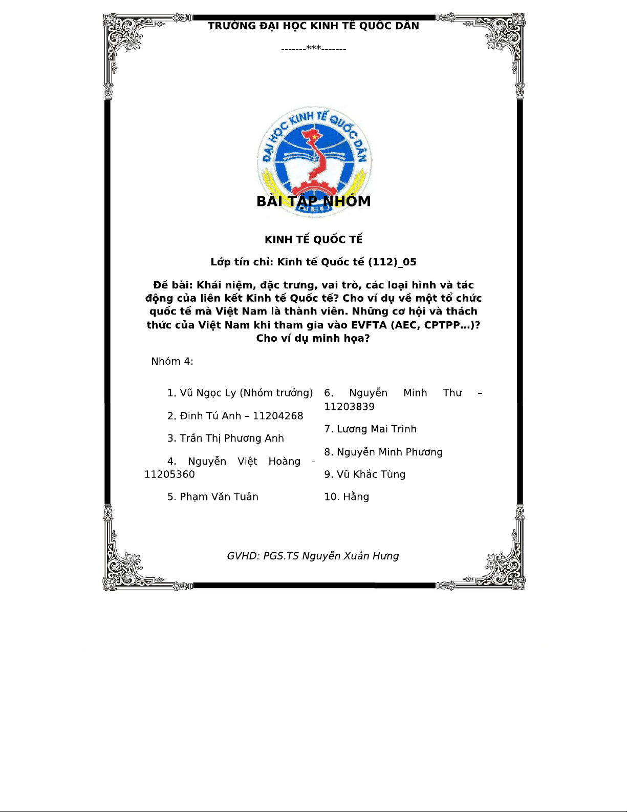 KINH TẾ QUỐC TẾ - Nhóm Bài Tập KTQT về Liên Kết Kinh Tế Quốc Tế
