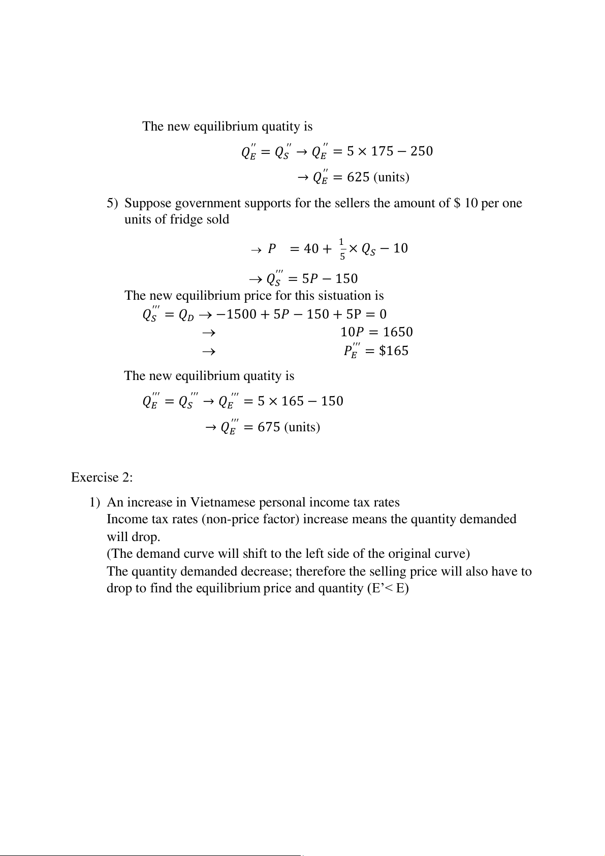 → 𝑄𝐸 = 5 × 165 − 150 → 𝑄′′′ 𝐸 = 675 (units) Exercise 2: