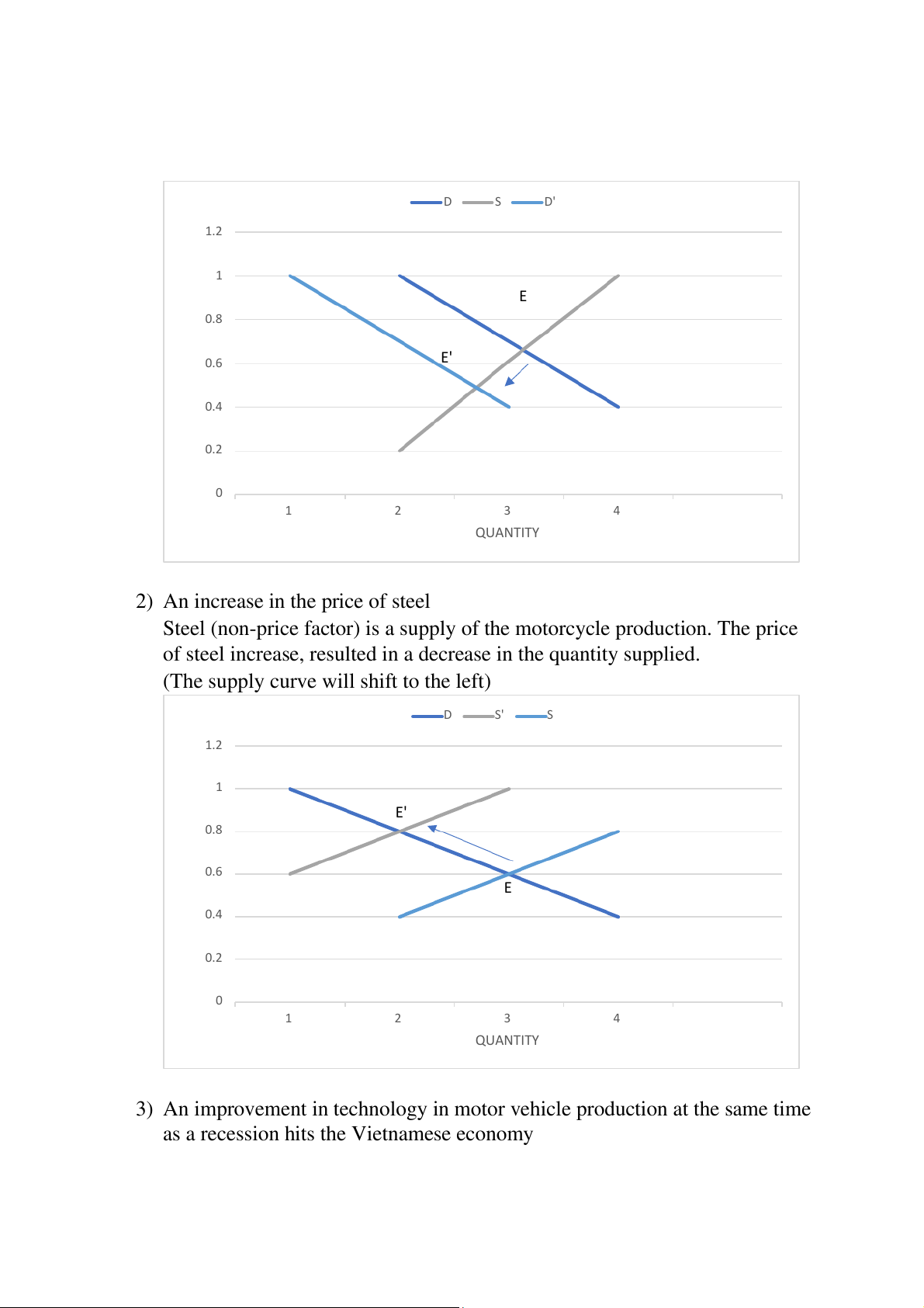 (The supply curve will shift to the left) D S' S 1.2 1 E' 0.8 ICE 0.6 R P E 0.4 0.2 0 1 2 3 4 QUANTITY