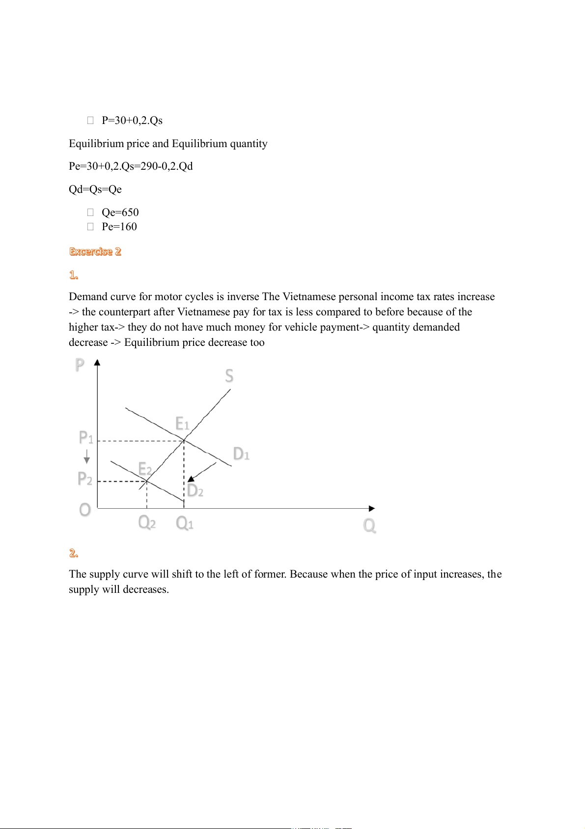 Equilibrium price and Equilibrium quantity Pe=30+0,2.Qs=290-0,2.Qd Qd=Qs=Qe Qe=650 Pe=160