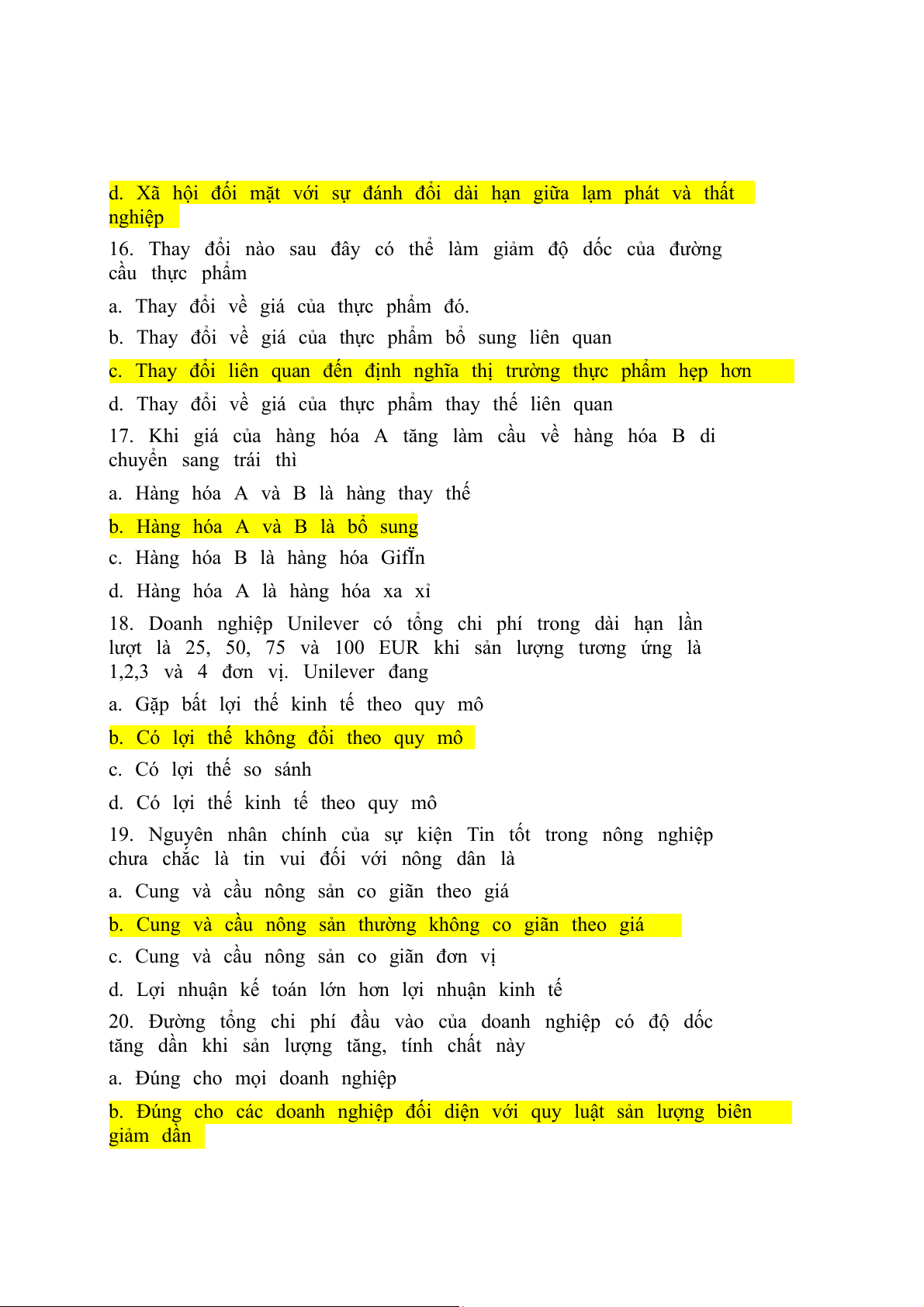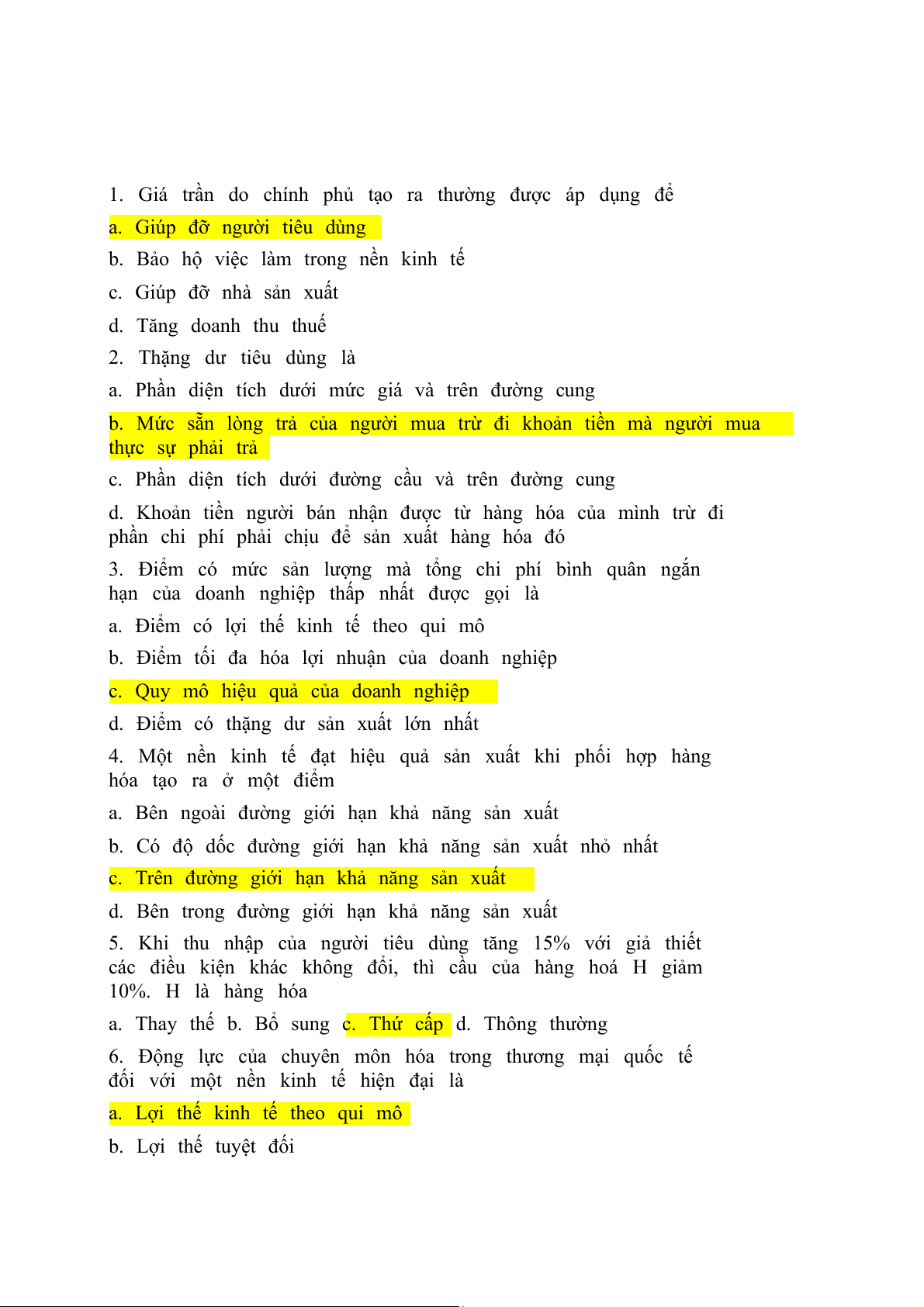 b. Có lợi thế không đổi theo quy mô c. Có lợi thế so sánh