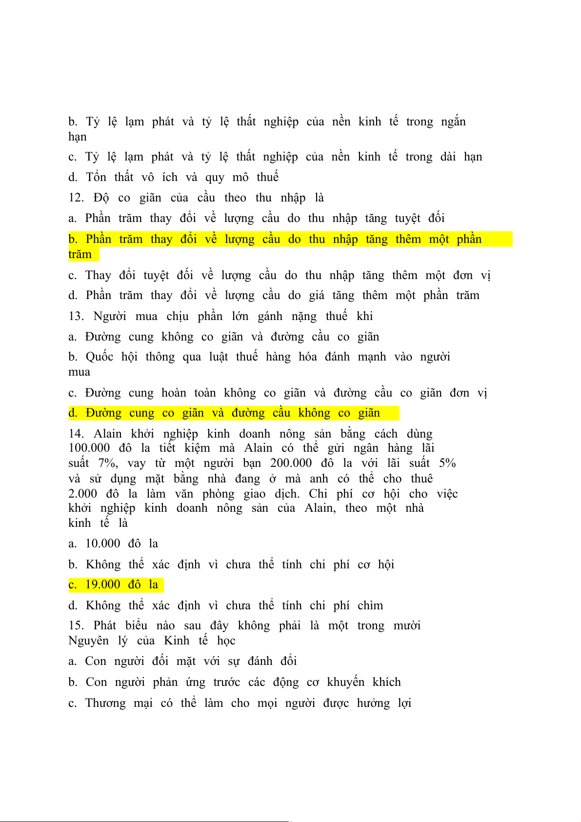 b. Không thể xác định vì chưa thể tính chi phí cơ hội c. 19.000 đô la
