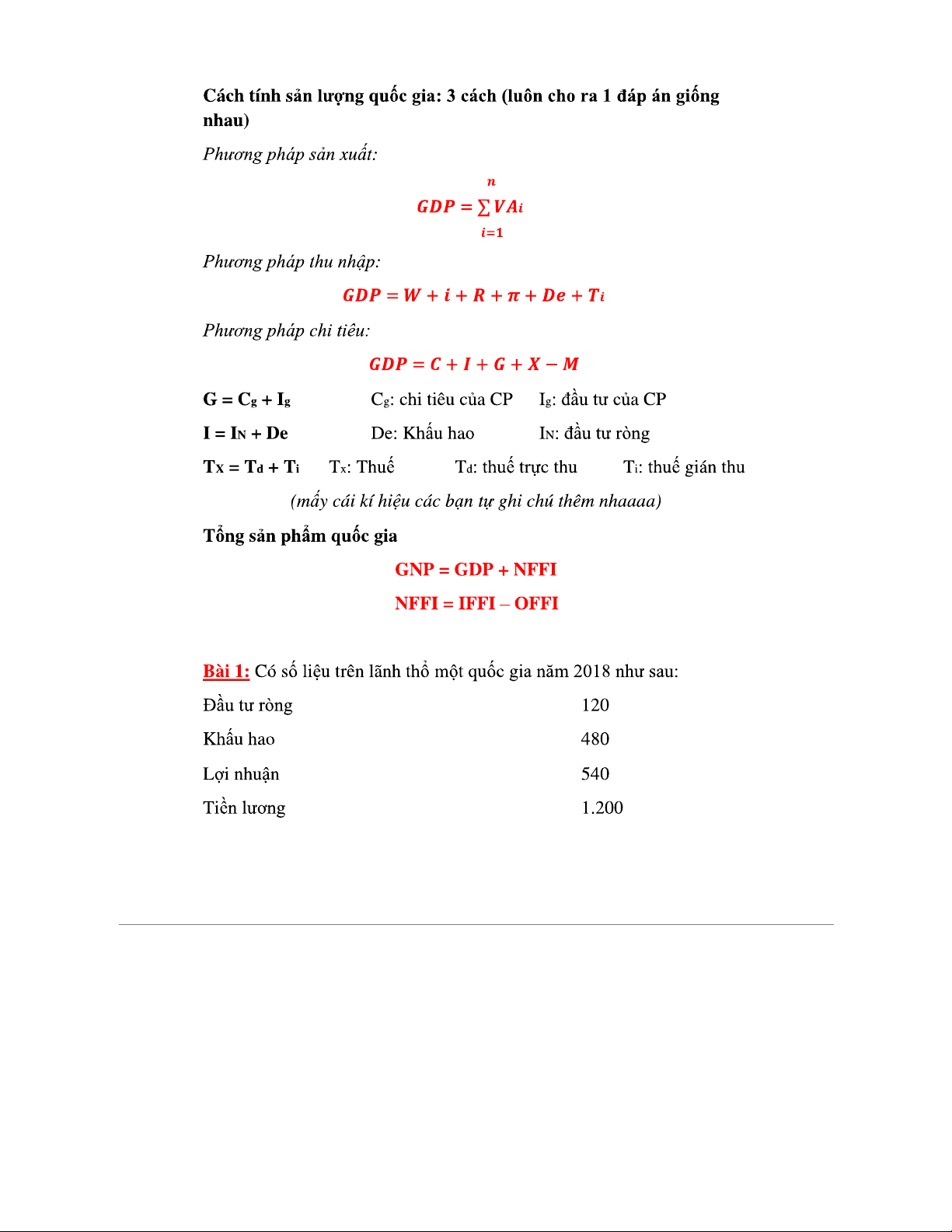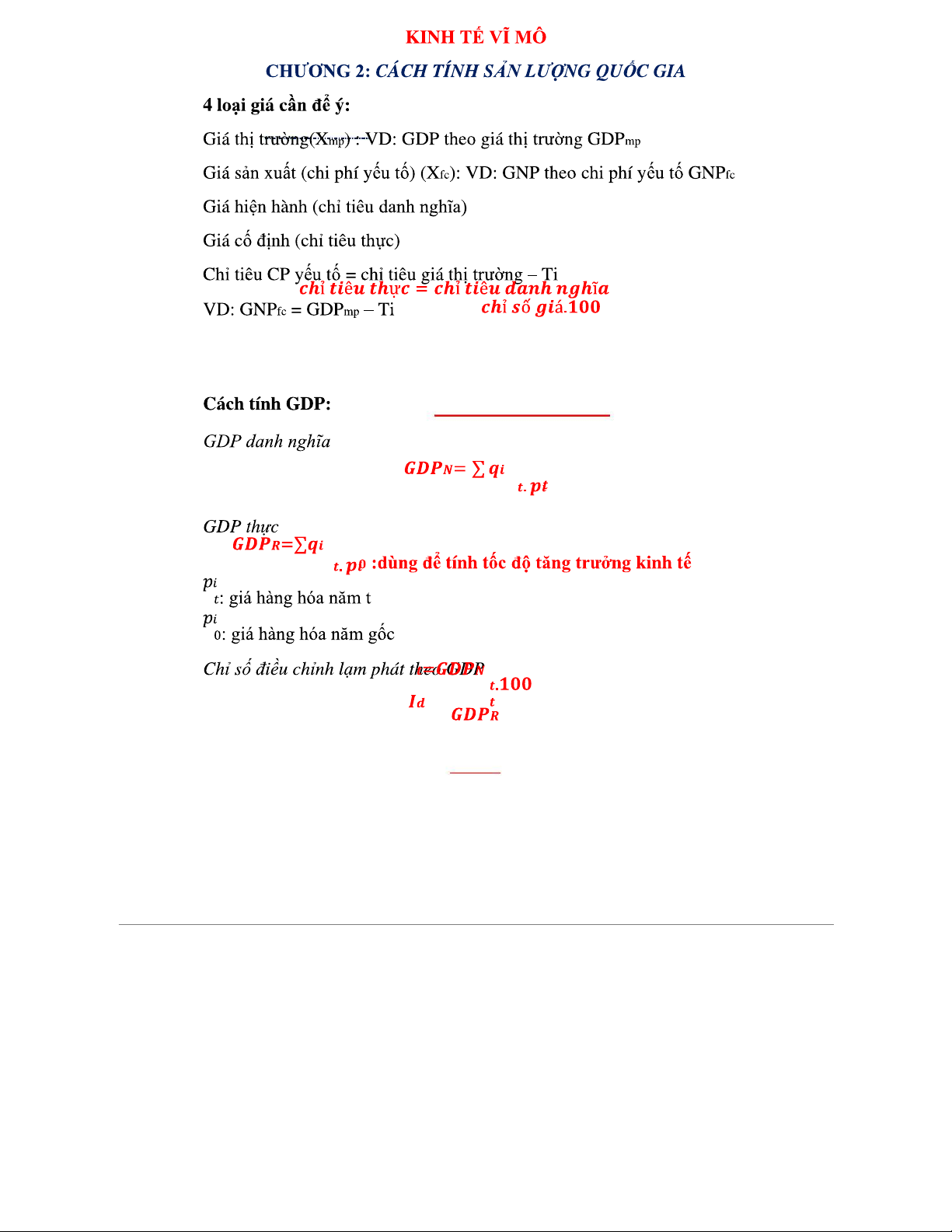 KINH TẾ VĨ MÔ CHƯƠNG 2: CÁCH TÍNH SẢN LƯỢNG QUỐC GIA VÀ GDP