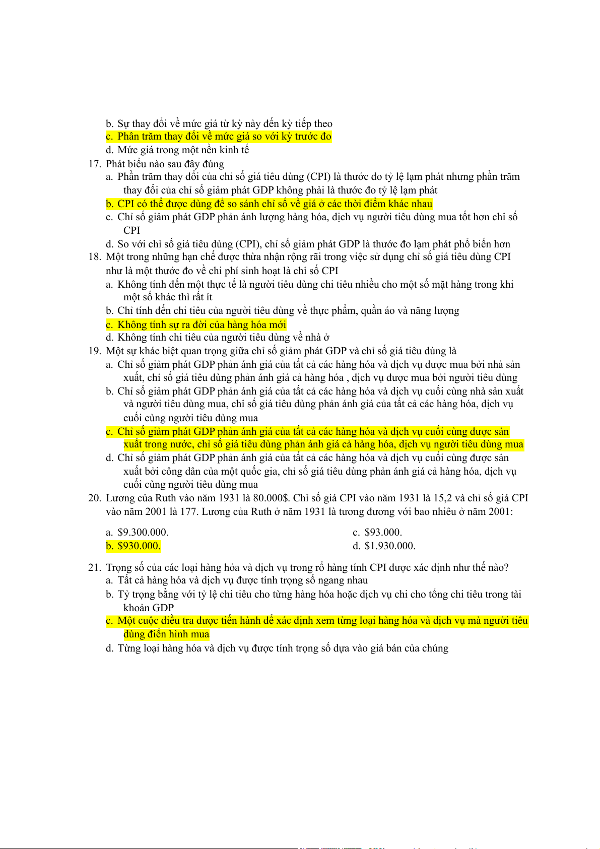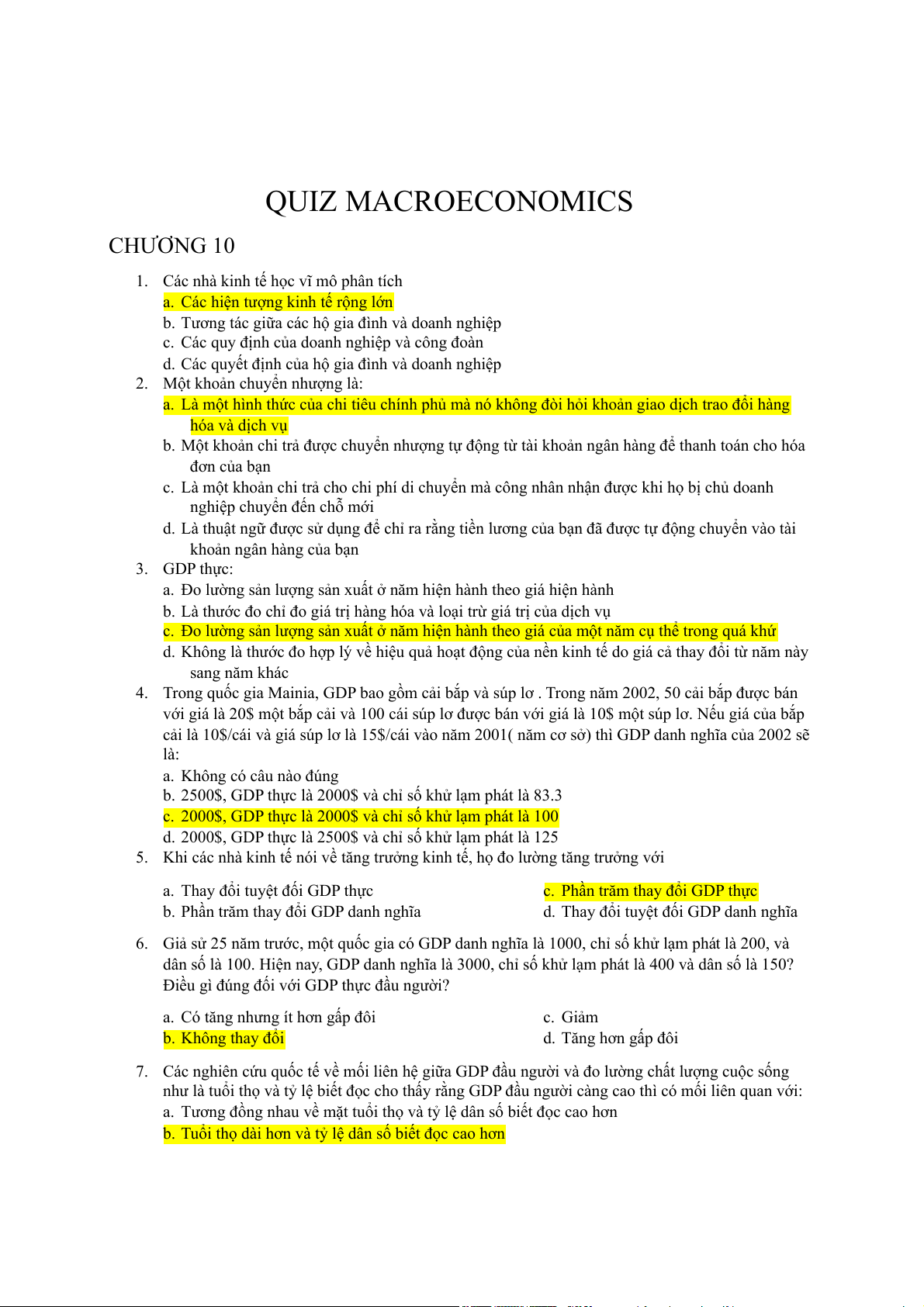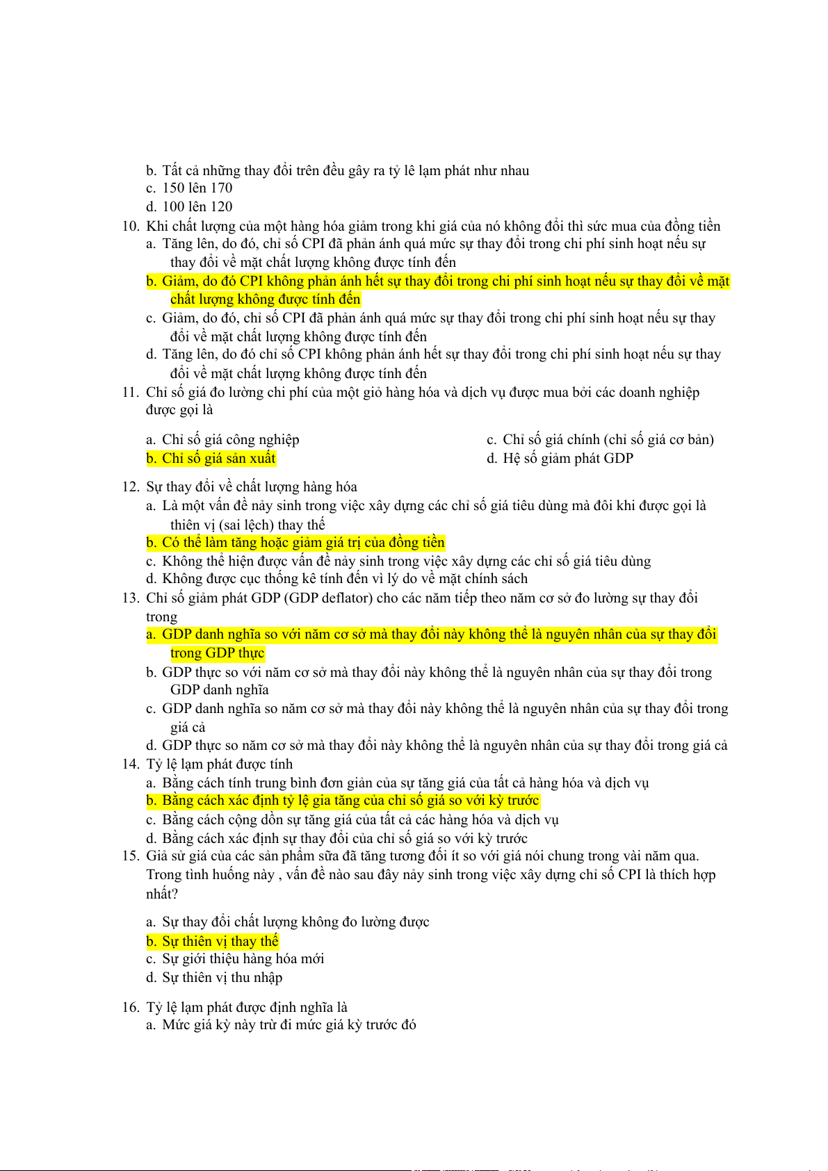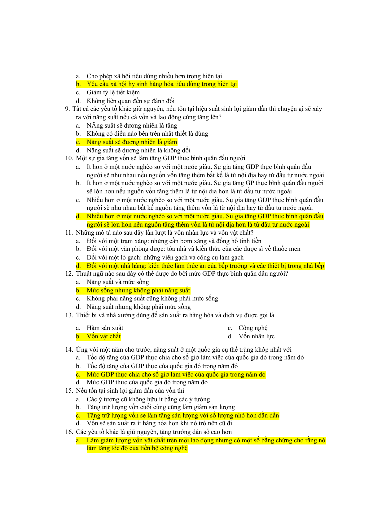 d. Thu nhập luôn lớn hơn sản xuất 10. Nếu GDP tăng thì
