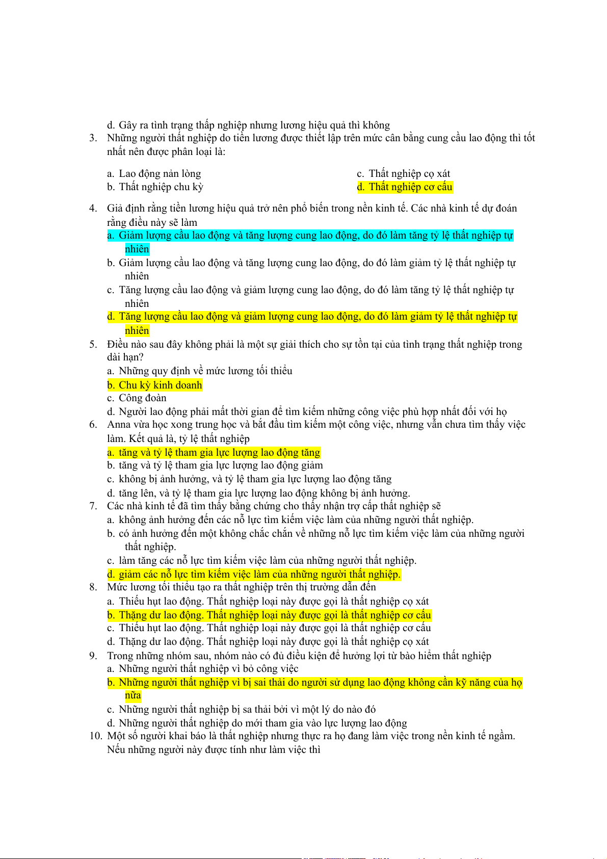 d. Thất nghiệp cơ cấu nhưng không bao gồm thất nghiệp cọ xát