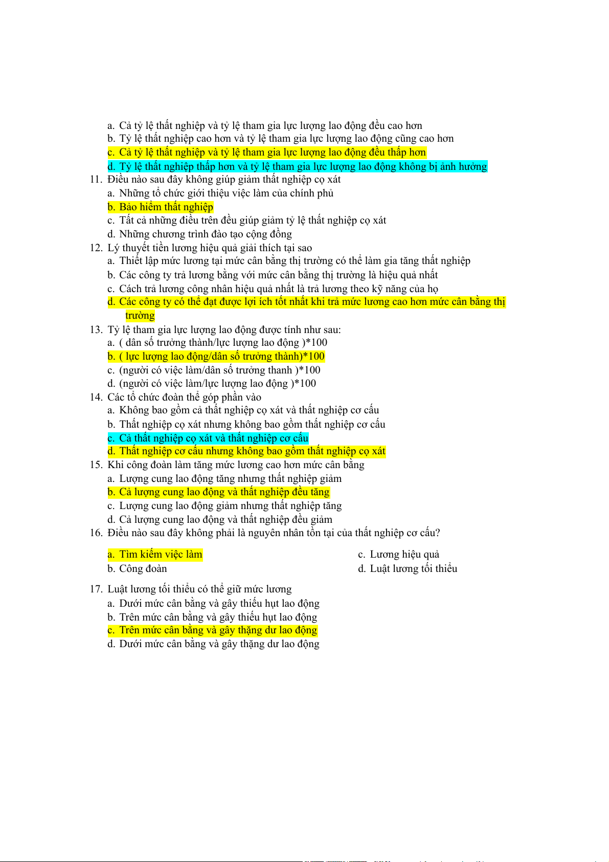 16. Điều nào sau đây không phải là nguyên nhân tồn tại của thất nghiệp cơ cấu? a. Tìm kiếm việc làm c. Lương hiệu quả b. Công đoàn