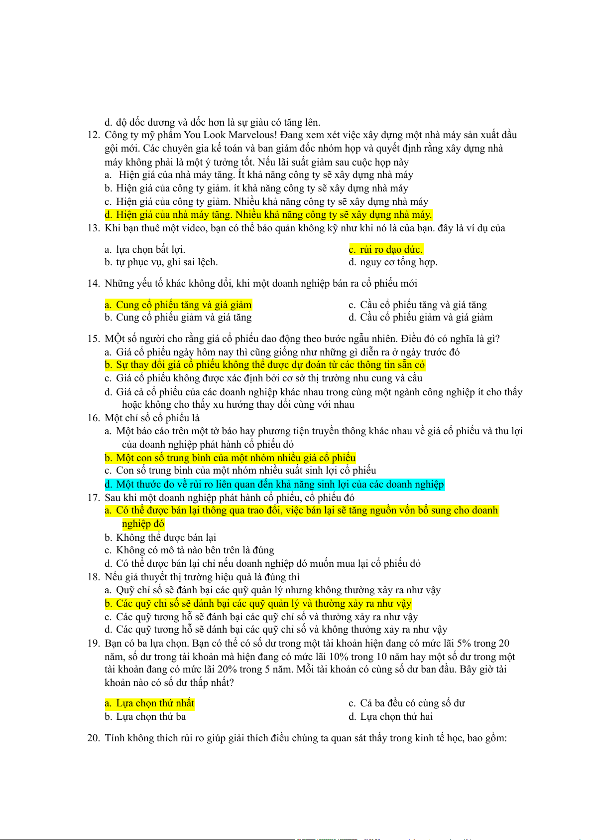 d. tăng giá của cổ phiếu đó CHƯƠNG 15 (sai 4 câu)