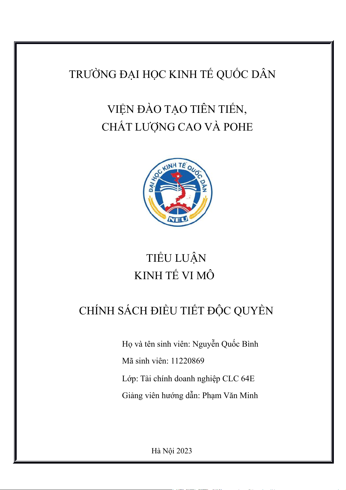 VIỆN ĐÀO TẠO TIÊN TIẾN, CHẤT LƯỢNG CAO VÀ POHE TIỂU LUẬN KINH TẾ VI MÔ