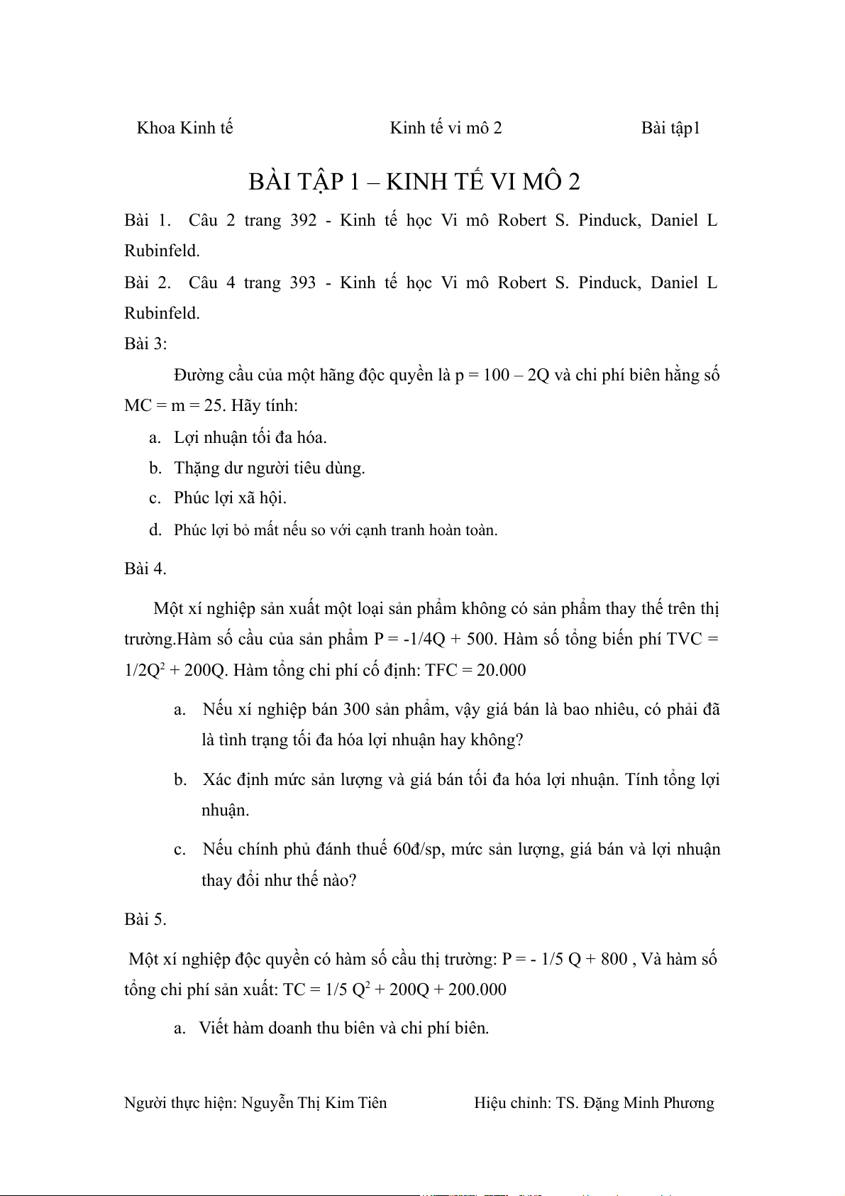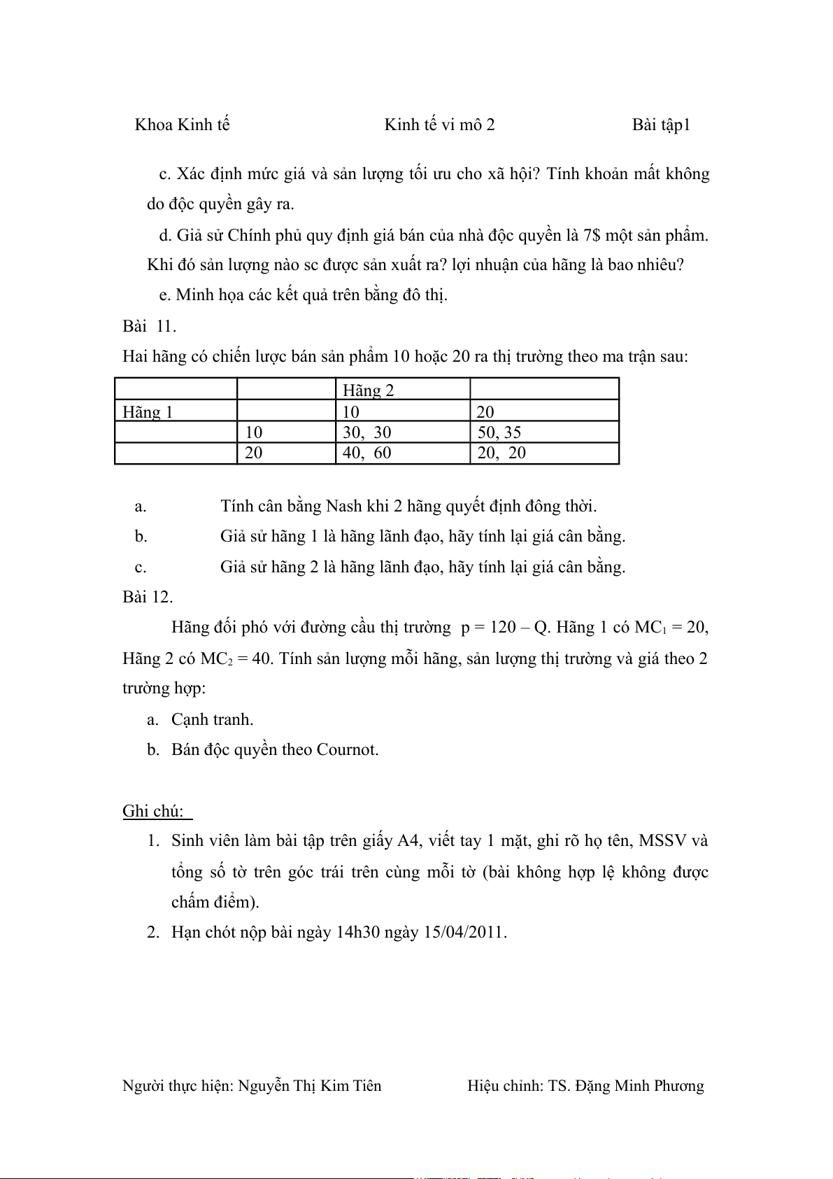Khoa Kinh tế Kinh tế vi mô 2 Bài tập1