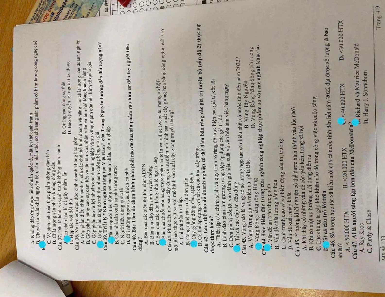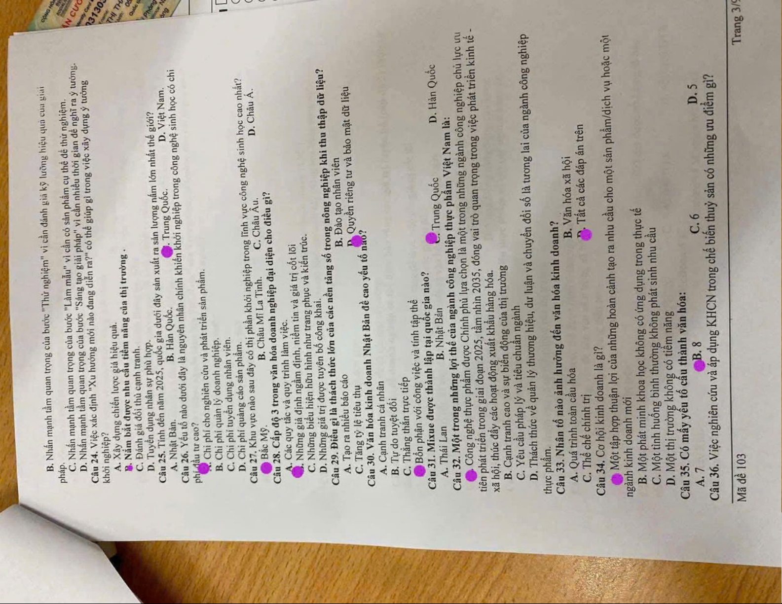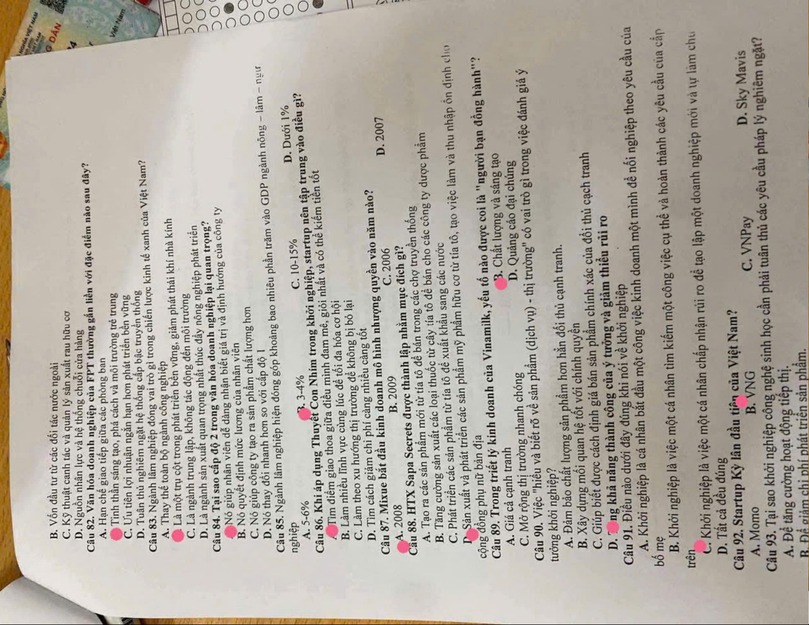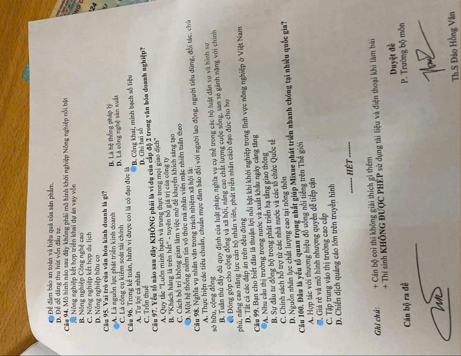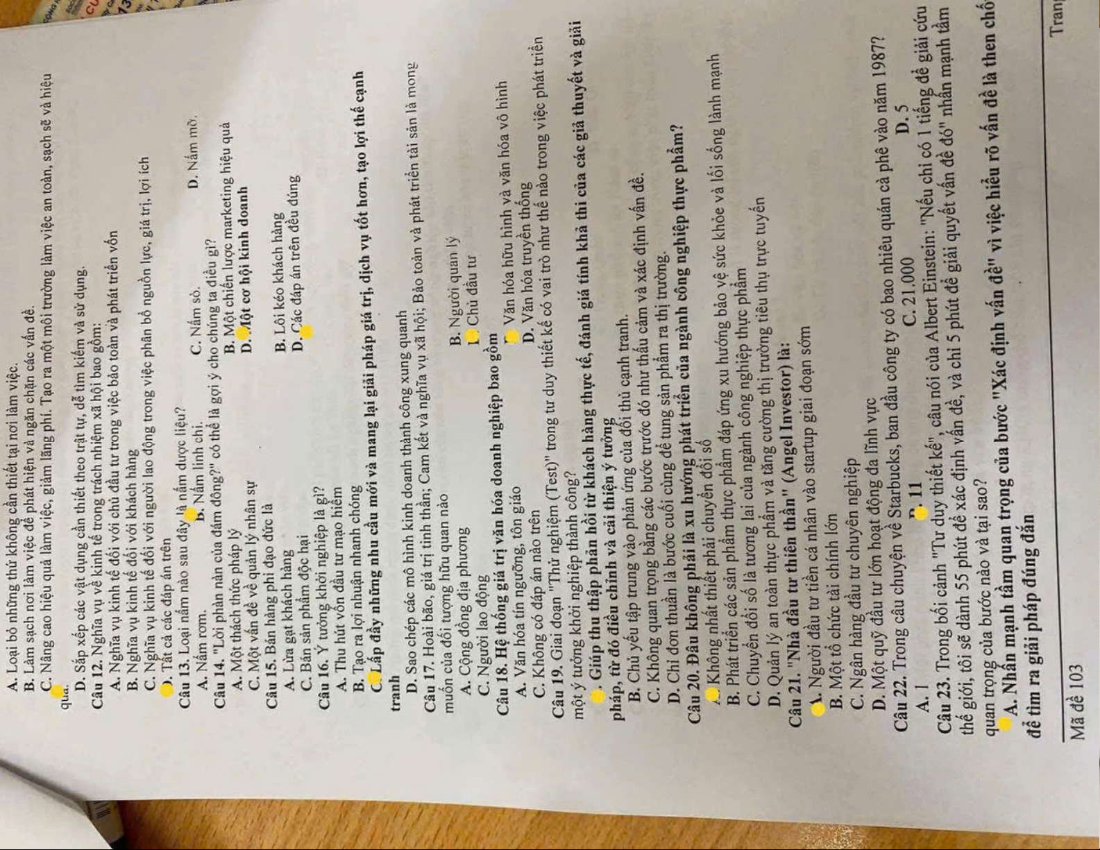 Đề thi gồm 100 câu trắc nghiệm môn Khởi nghiệp và văn hóa kinh doanh | Đại học Bách Khoa Hà Nội