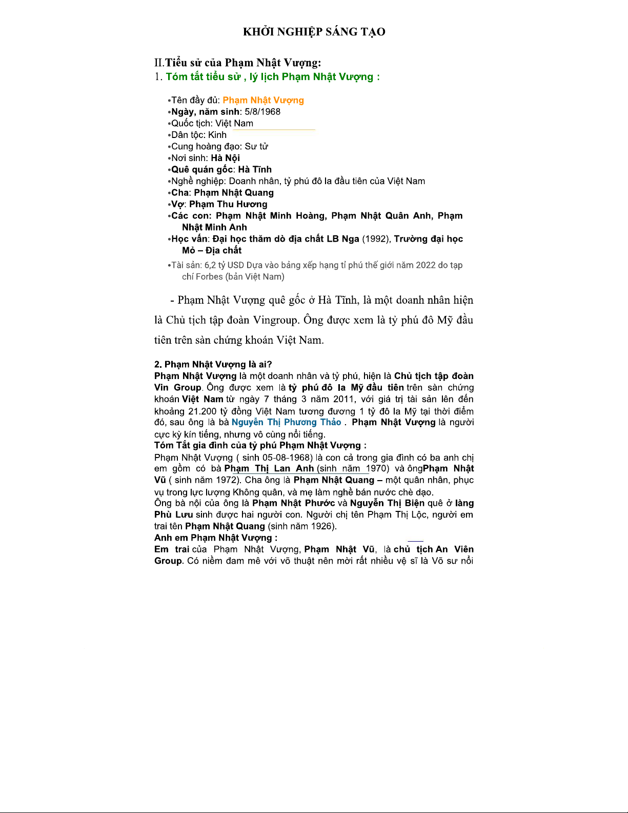 KNST-Đời sống và sự nghiệp của tỷ phú Phạm Nhật Vượng