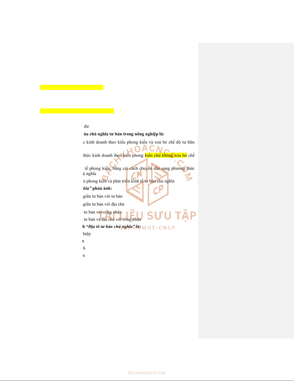 104. Đặc điểm phát triển của chủ nghĩa tư bản trong nông nghiệp là: