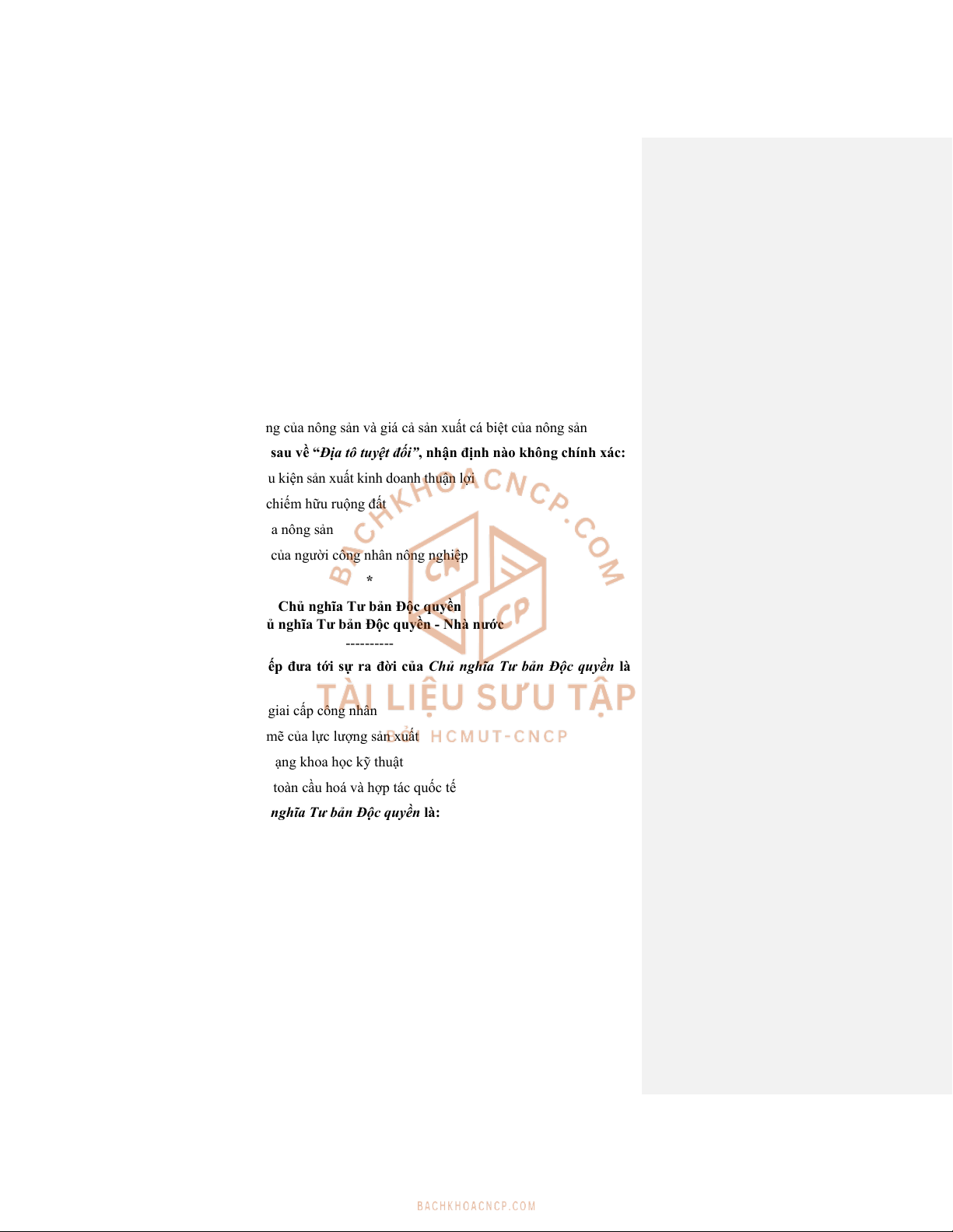 110. Trong các nhận định sau về “Địa tô tuyệt đối”, nhận định nào không chính xác: