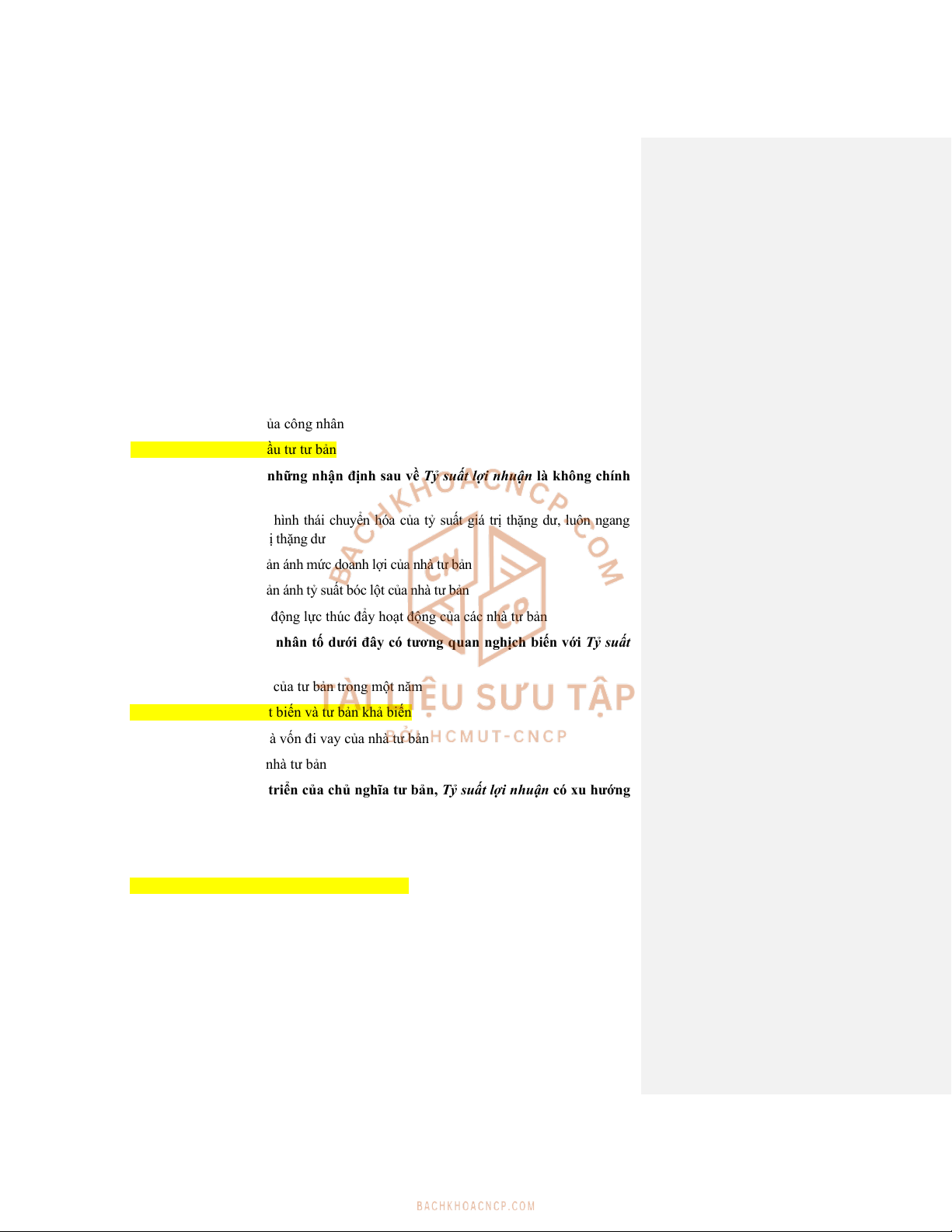 101. Trong quá trình phát triển của chủ nghĩa tư bản, Tỷ suất lợi tức có xu hướng giảm là do: