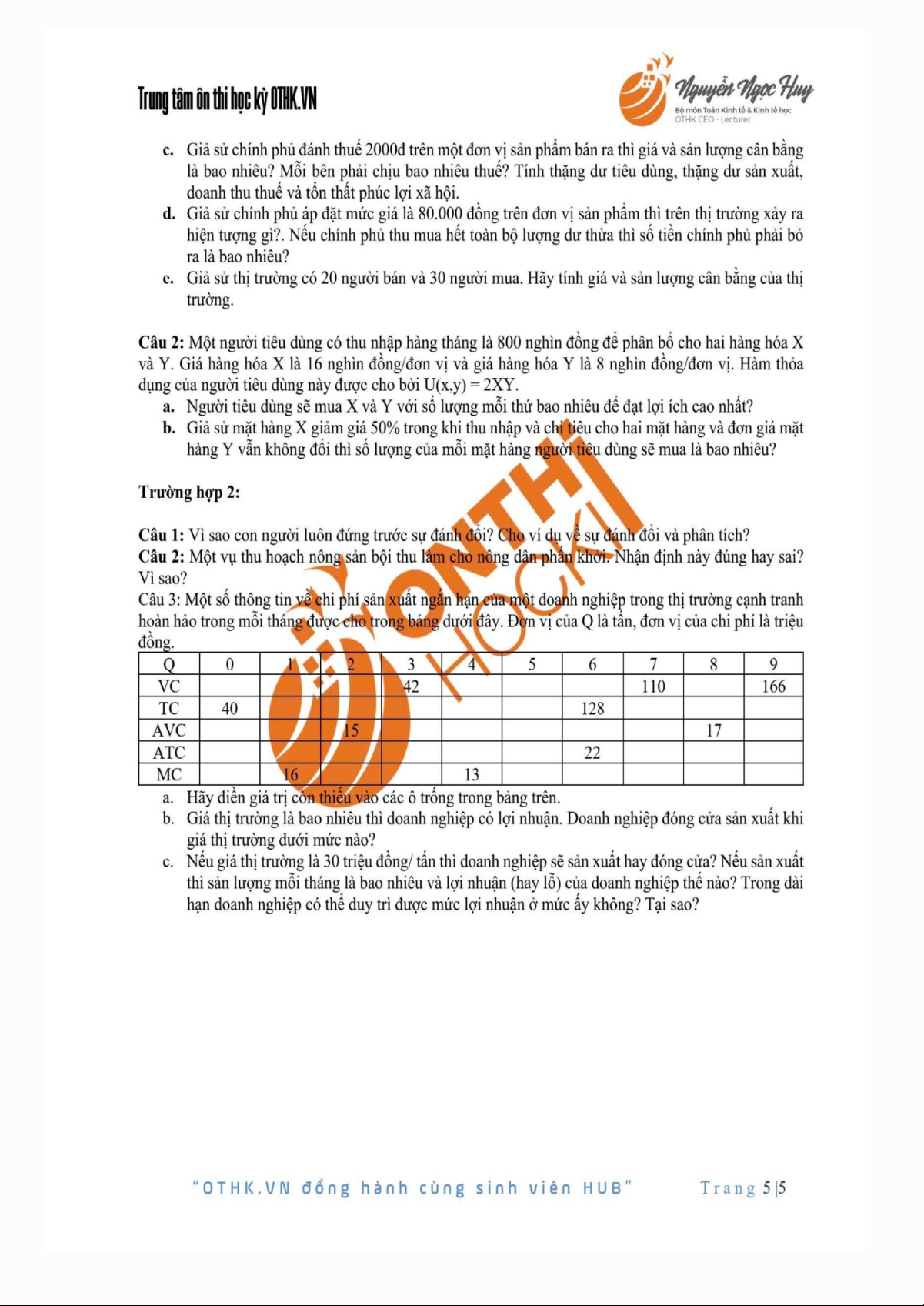 Đề thi kết thúc học phần môn Kinh tế vi mô 1 Thời gian: 50 phút