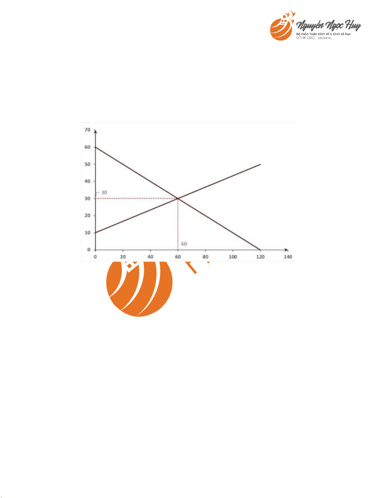 Câu 6. Có hàm số cung và cầu như sau: 𝑄𝐷 = −2𝑃 + 200; 𝑄𝑆 = 𝑃 − 40. Nếu Chính