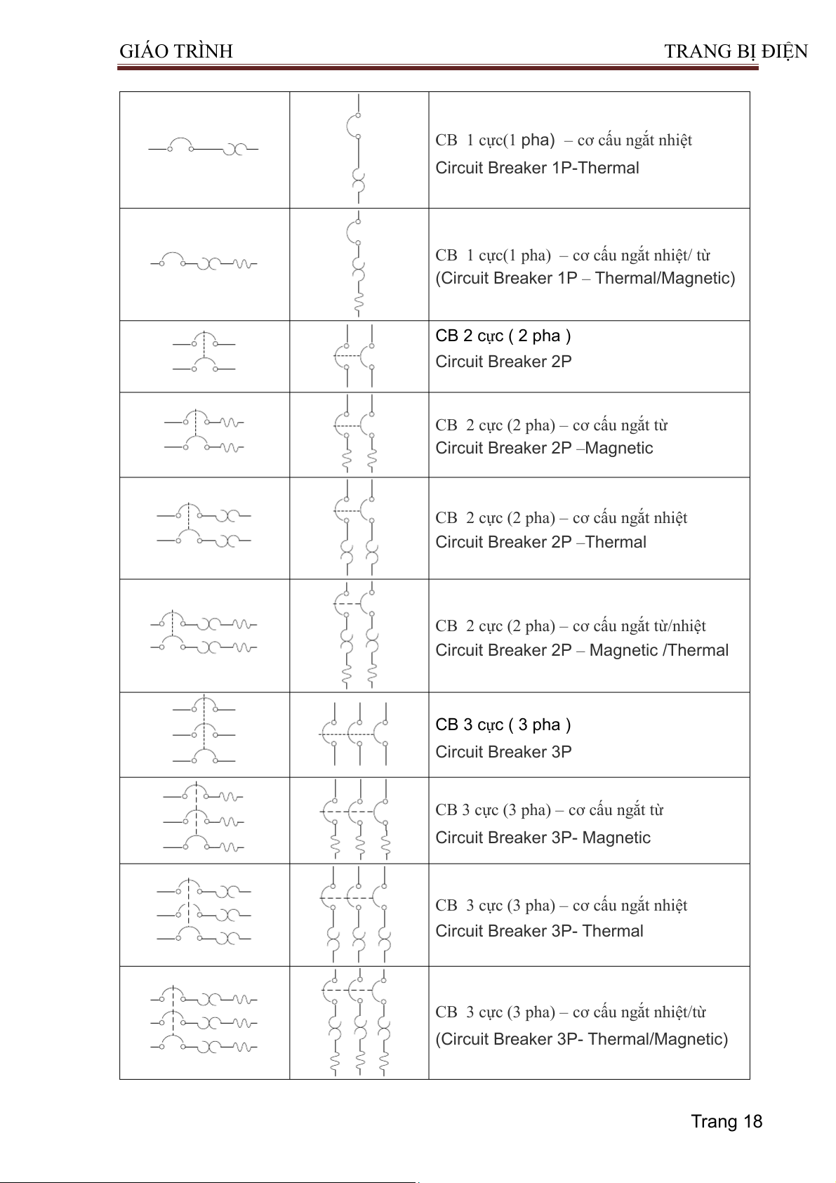 CB 1 cực (1 pha) – cơ cấu ngắt từ Circuit Breaker 1P - Magnetic Trang 17 GIÁO TRÌNH TRA NG BỊ ĐIỆN