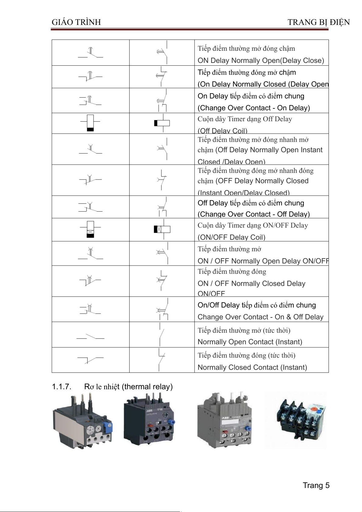 Cuộn dây Timer dạng On delay (ON Delay Coil) Trang 4 GIÁO TRÌNH TRA NG BỊ ĐIỆN