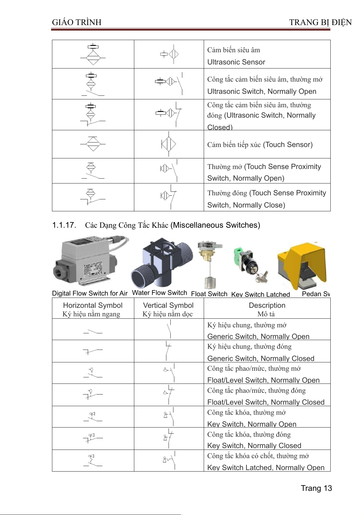 Key Switch Latched, Normally Open Trang 13 GIÁO TRÌNH TRA NG BỊ ĐIỆN