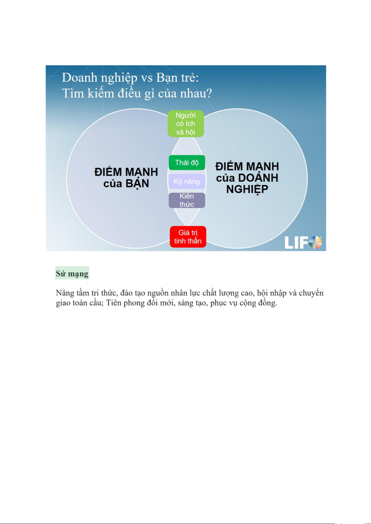 b. Thấu hiểu doanh nghiệp; Quản lý được bản thân; Giao tiếp hiệu quả: Hợp tác thành