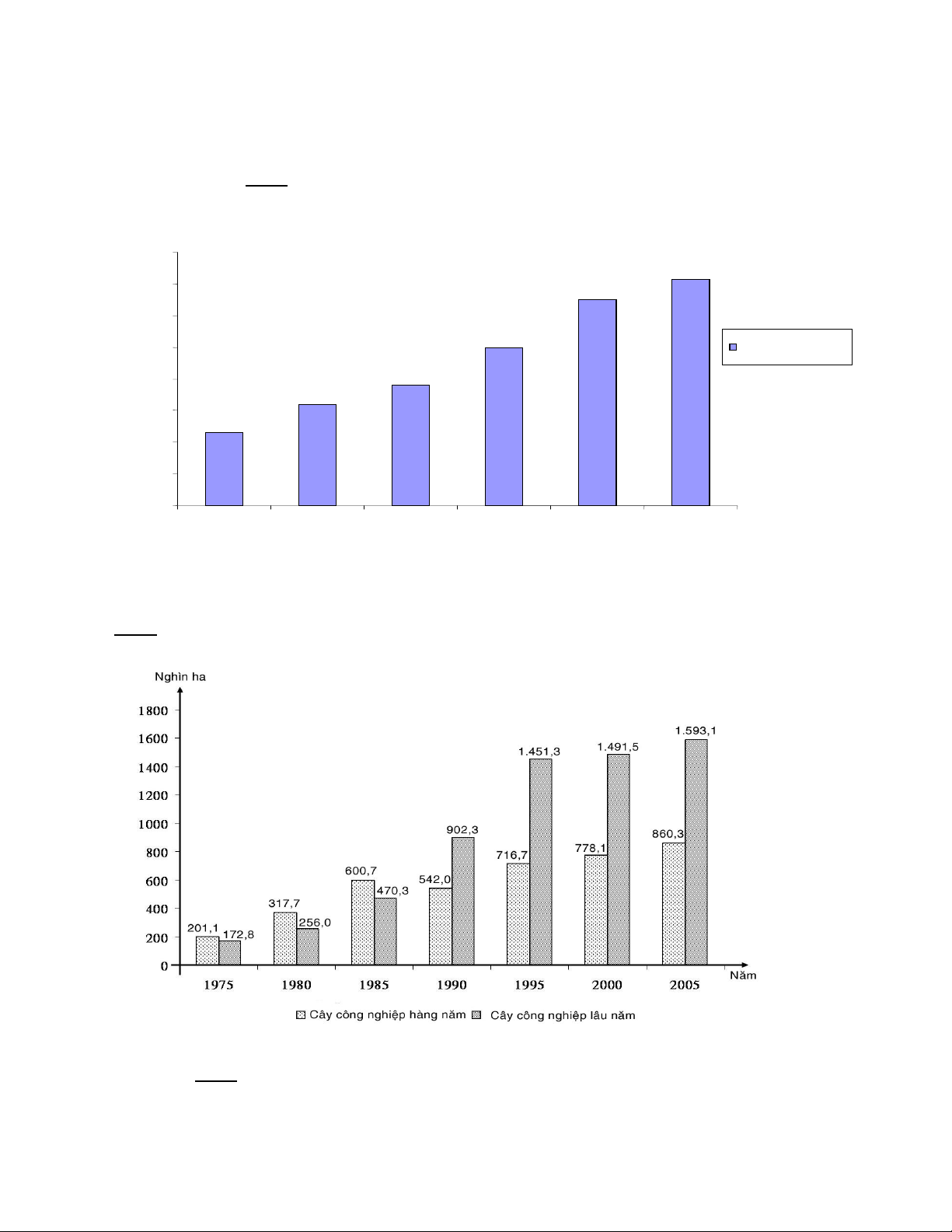 Ví dụ: Biểu đồ thể hiện biến động diện tích cây công nghiệp hàng năm và cây công nghiệp lâu