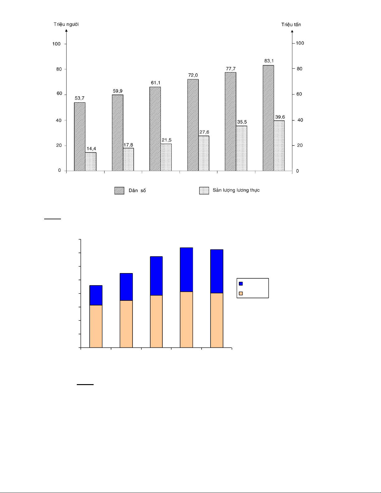 Ví dụ: Biểu đồ thể hiện dân số và sản lượng lương thực của nước ta giai đoạn 1980-2005 - Biểu đồ cột chồng
