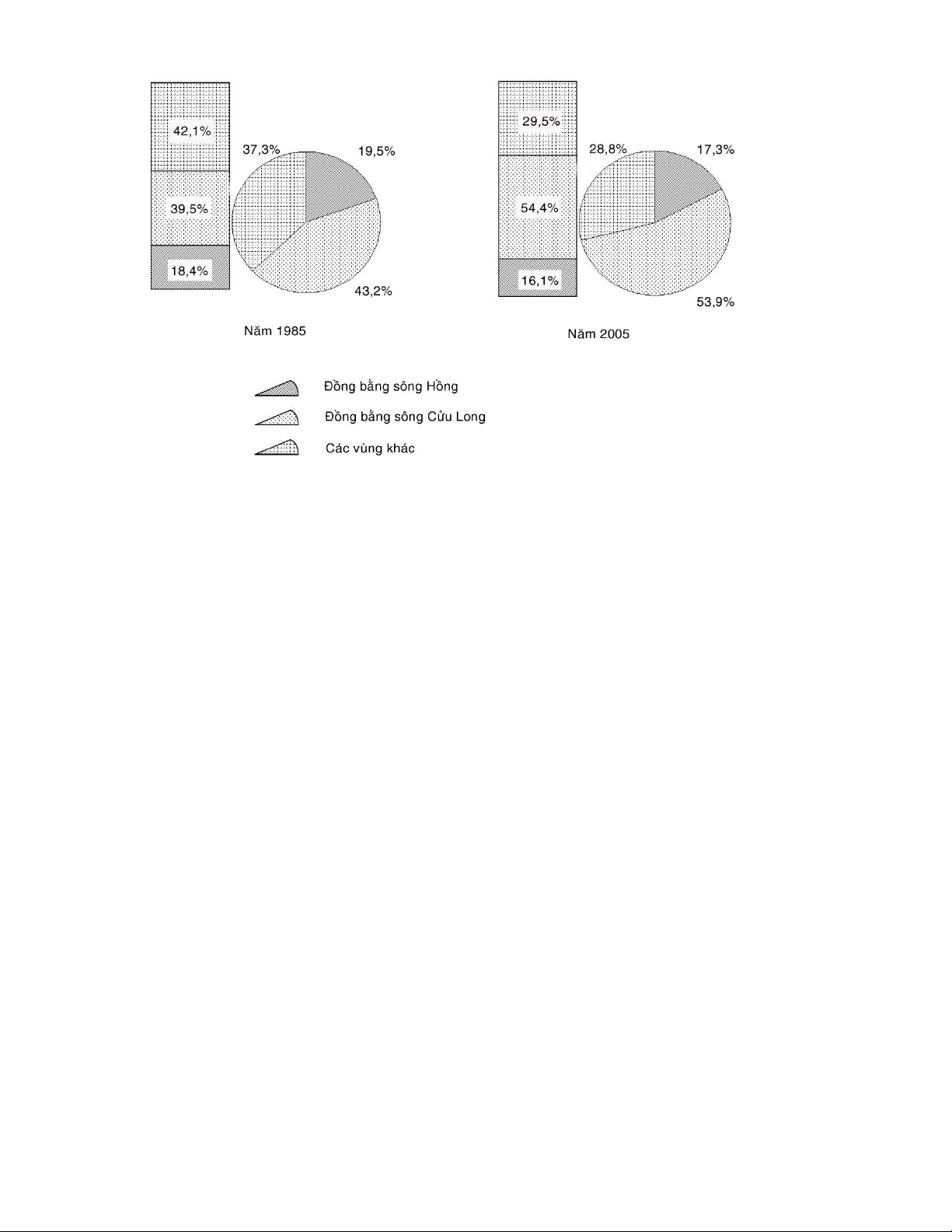 phân theo vùng ở nước ta năm 1985 và 2000