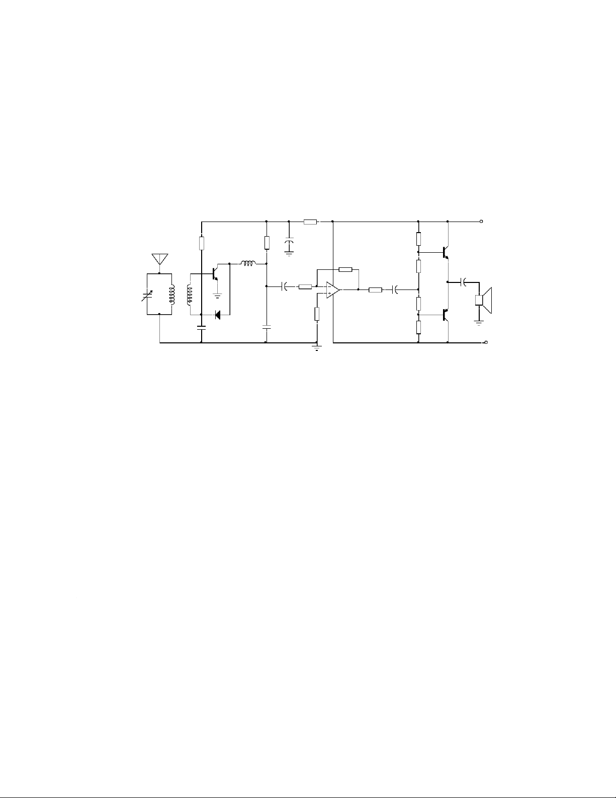 1. Sơ đố nguyên lý: R3 1k 12V +Ucc C5 + R8 R2 10k 1M R1 2.2k 100uF Anten T2 Lc R5 1k R10 47k C7 T1 C4 1000uF R4 10uF C6 R7 + 2.2k 10uF + 774 2.2k + C1 L1 L2 Loa R11 47k R5 T3 1k D C3 C2 R9 10nF 10k 10nF -12V -Ucc