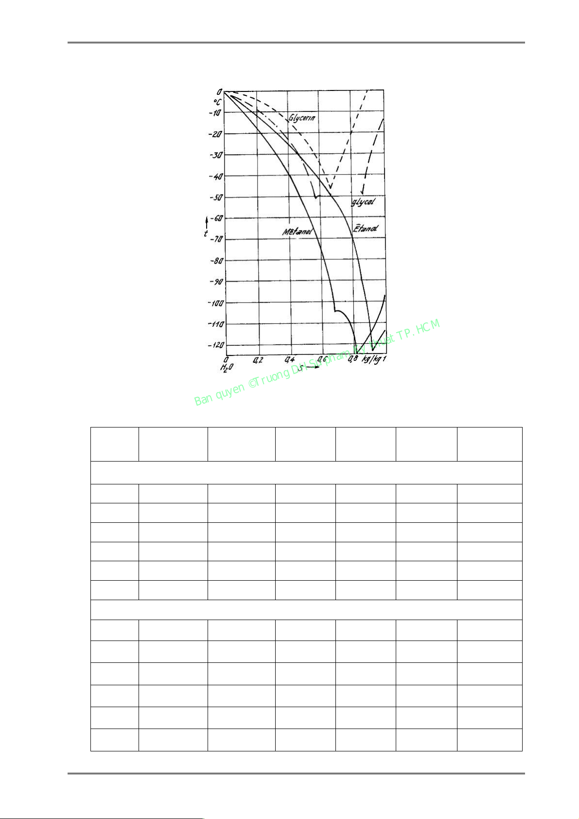 dung dịch đạt được khoảng tđb -50oC, nồng độ dung dịch khoảng 58% (Hình 2.3). 2) Nhiệt dung riêng lớn. 3) Độ nhớt vừa phải.