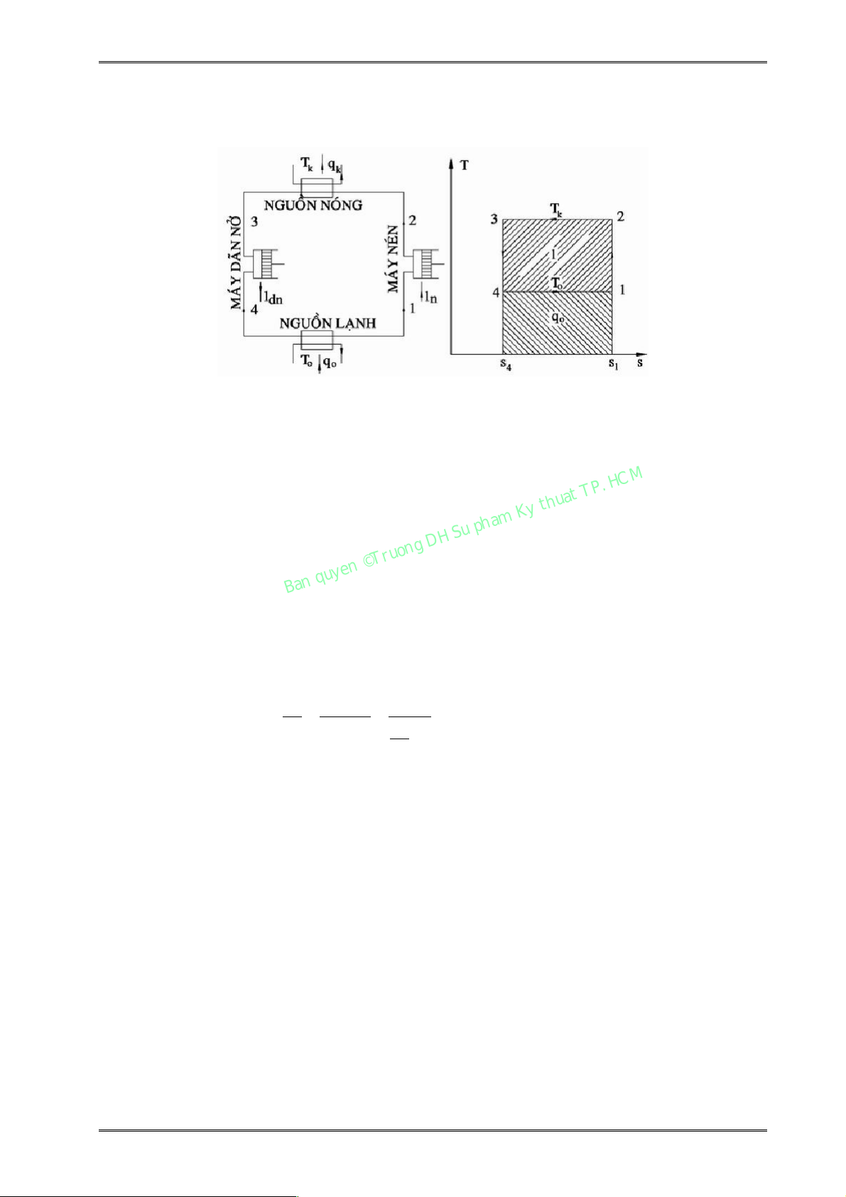 Chu trình ngược Carnot là chu trình ngược lý tưởng, mọi quá trình là thuận nghịch, nhiệt 1