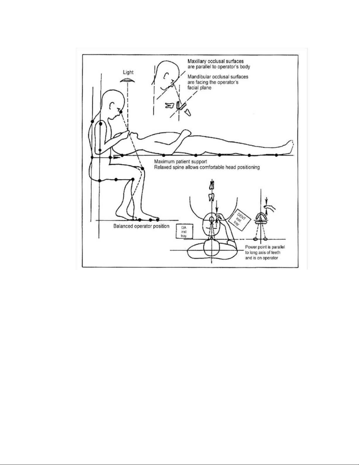 Vị trí ngồi của bác sĩ: từ vị trí 11 giờ đến 1 giờ trên "mặt đồng hồ điều trị". •