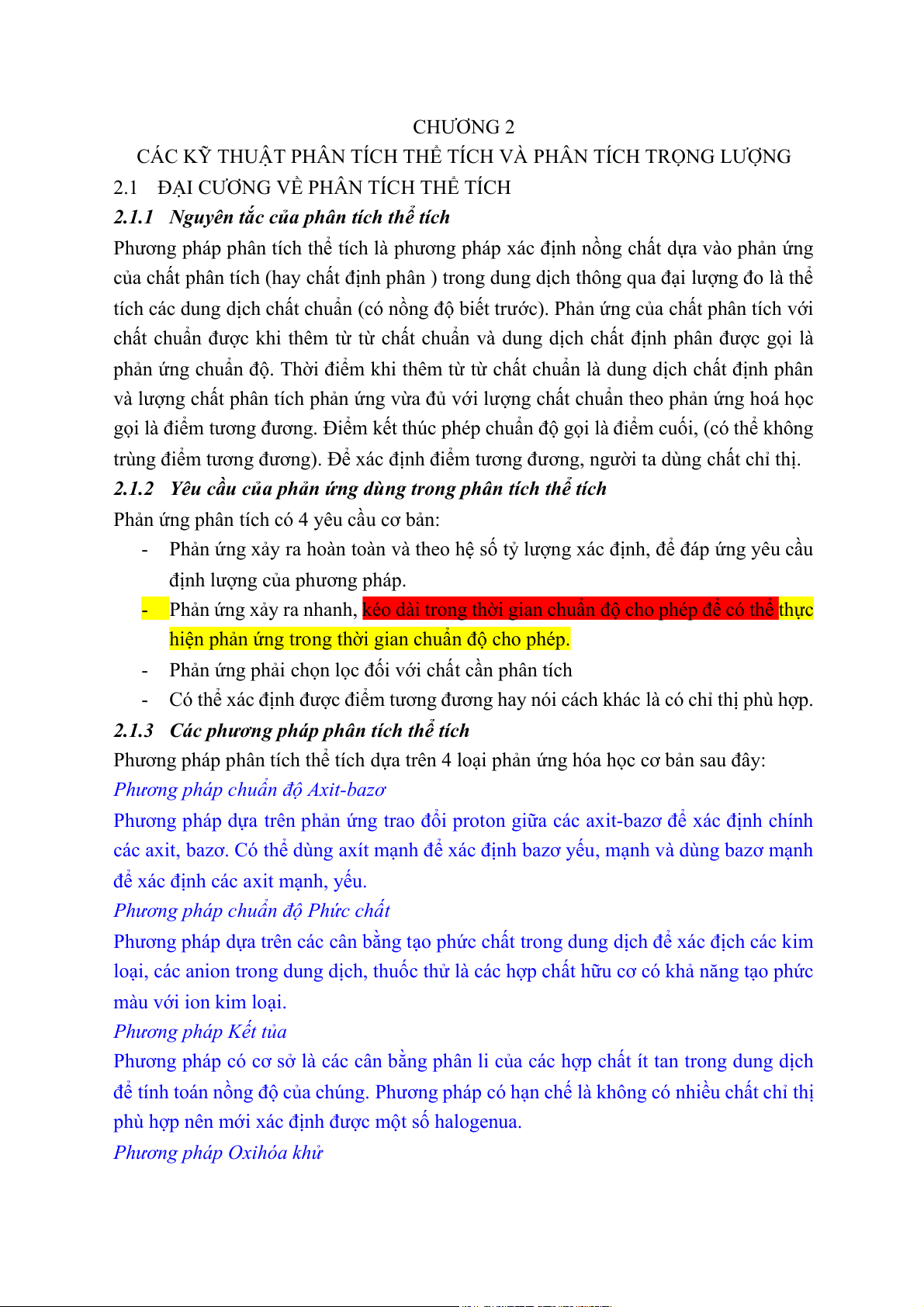 2.1 ĐẠI CƯƠNG VỀ PHÂN TÍCH THỂ TÍCH