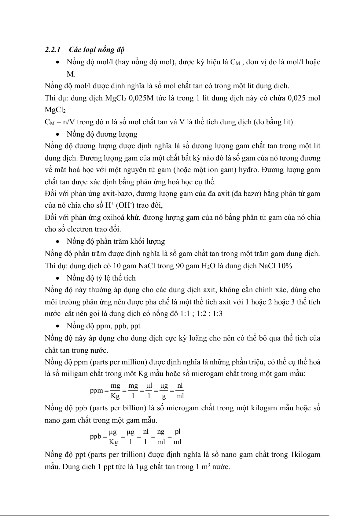 nước cất nên gọi là dung dịch có nồng độ 1:1 ; 1:2 ; 1:3 ¥ Nồng độ ppm, ppb, ppt