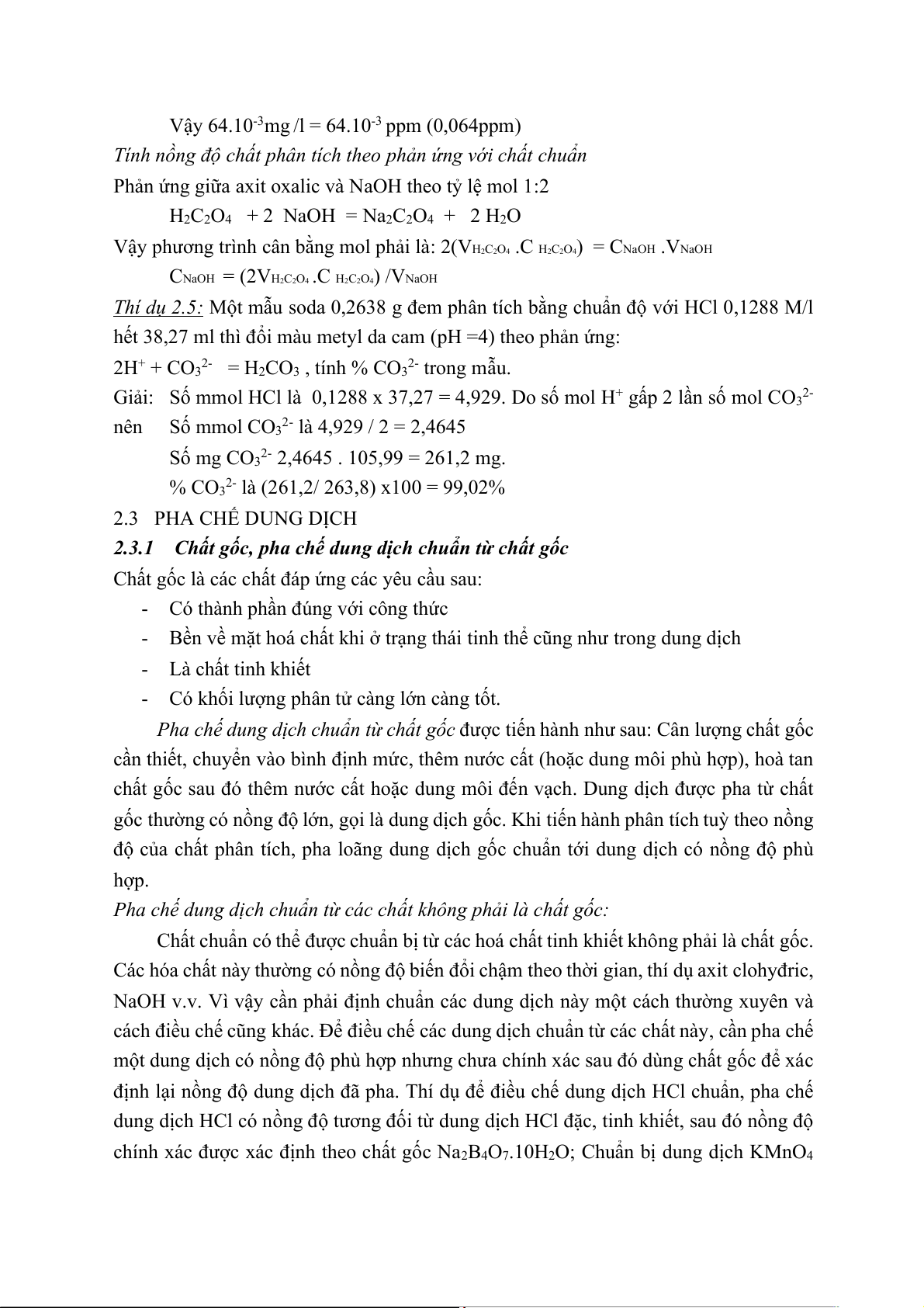 2.3.1 Chất gốc, pha chế dung dịch chuẩn từ chất gốc