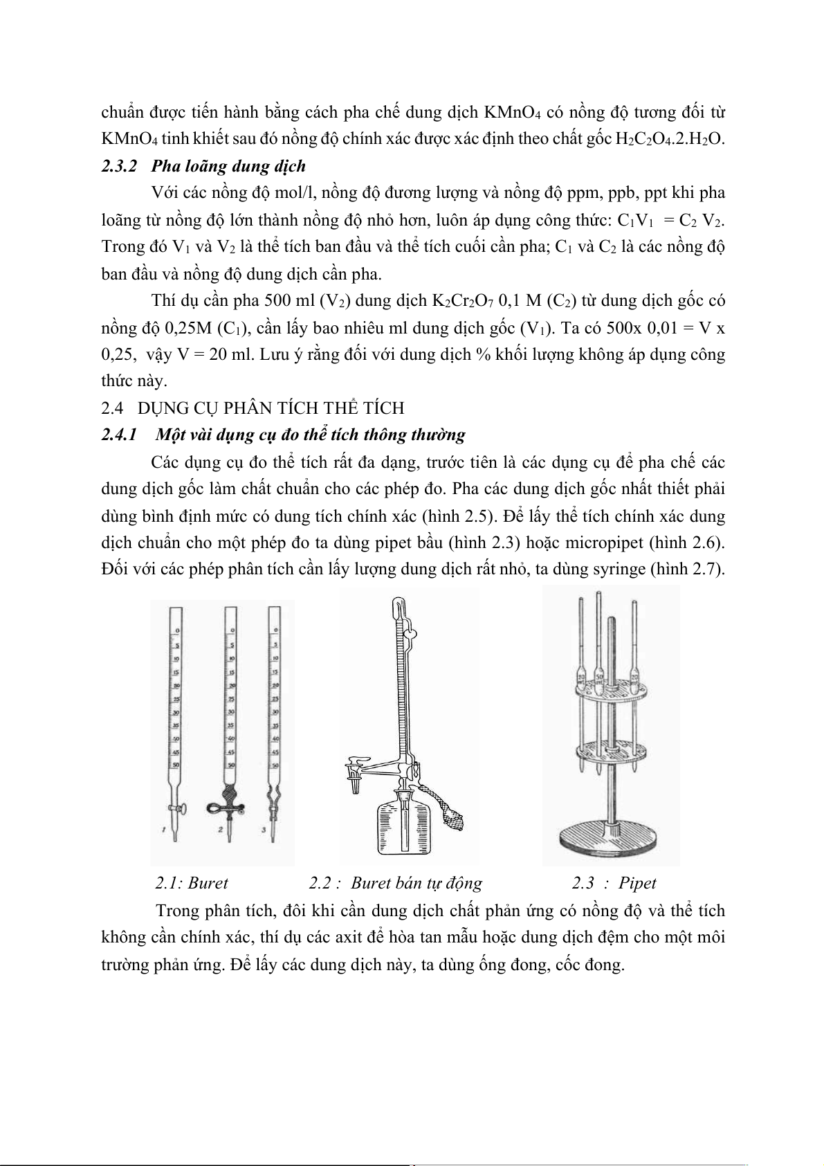 2.1: Buret 2.2 : Buret bán tự động 2.3 : Pipet
