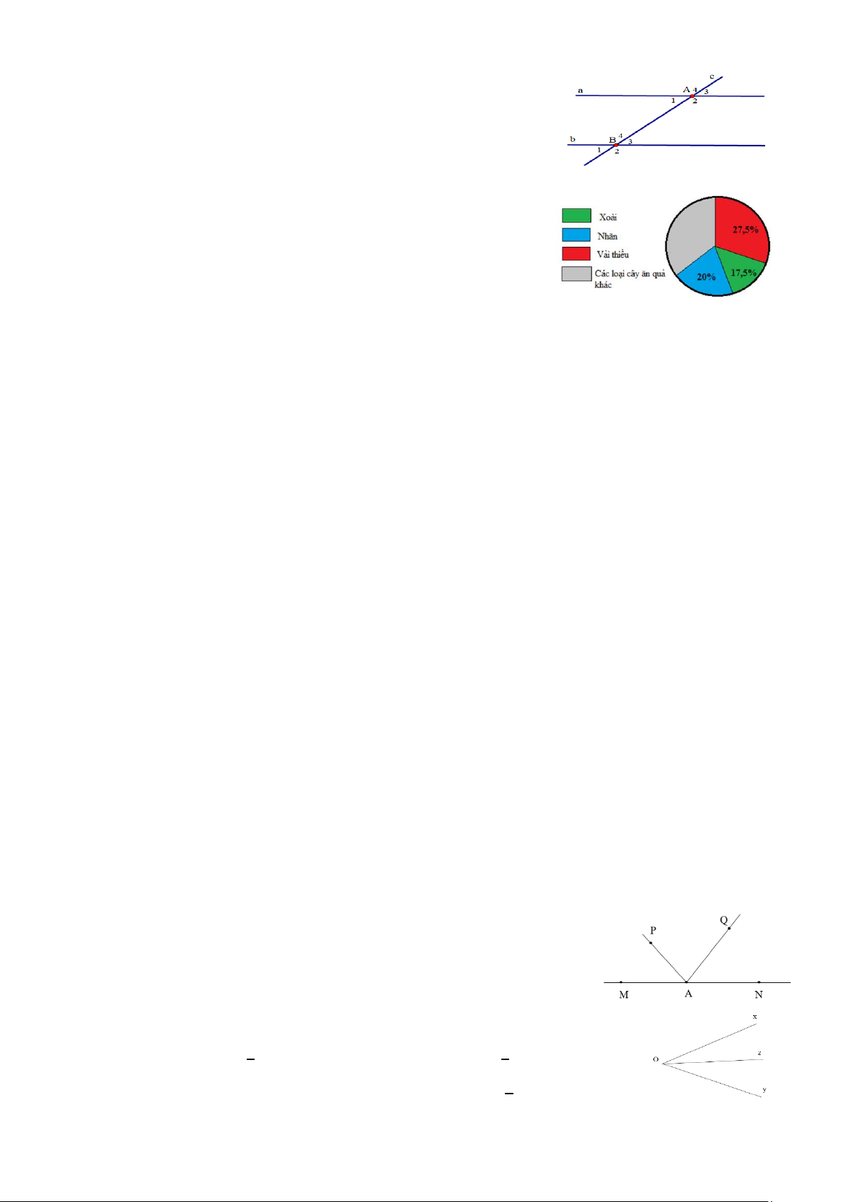 Câu 10. Trong hình vẽ dưới đây, góc kề bù với NAQ ̂ là: A. PAQ ̂ B. PAM ̂ C. MAQ ̂ D. PAN ̂