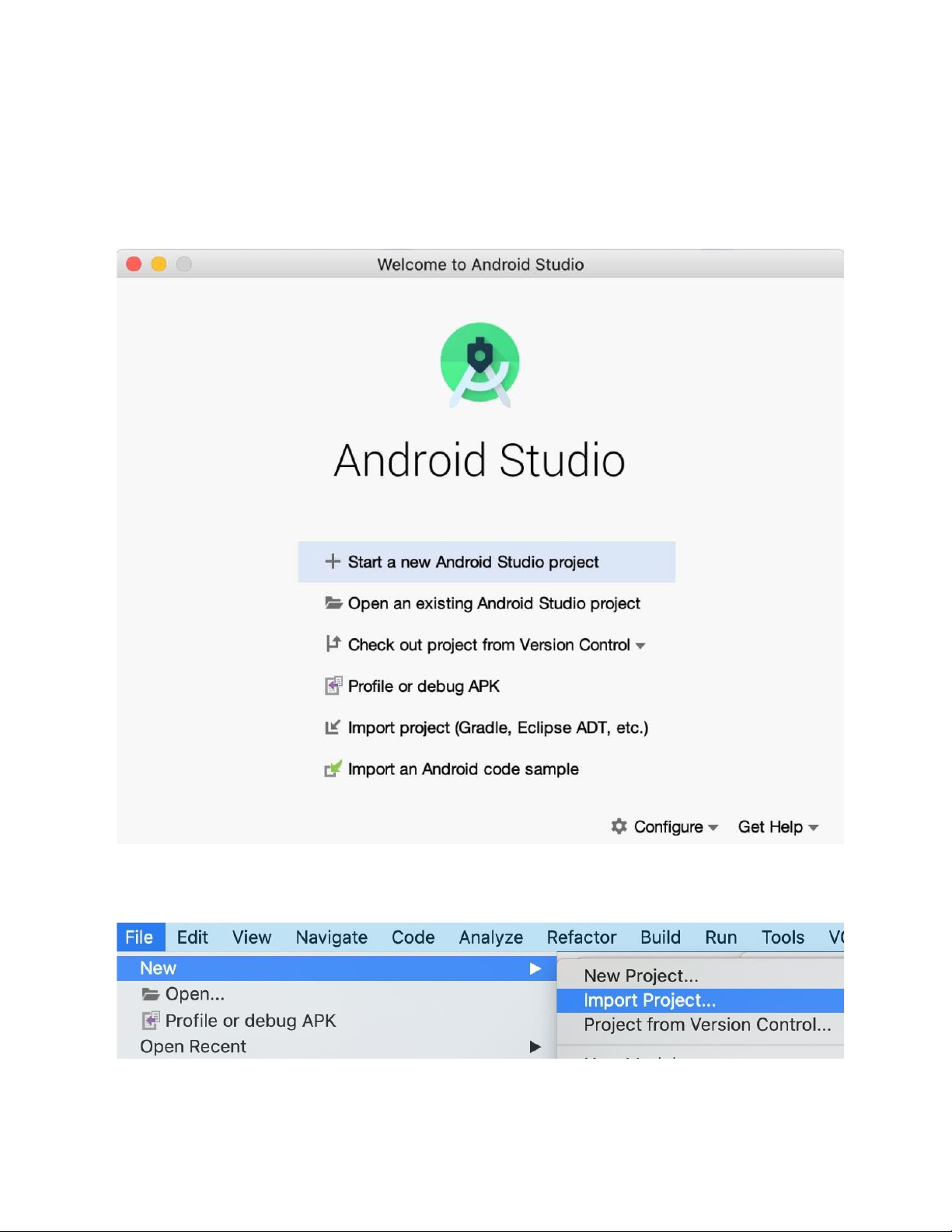 Note: If Android Studio is already open, instead, select the File > New > Import Project menu option.